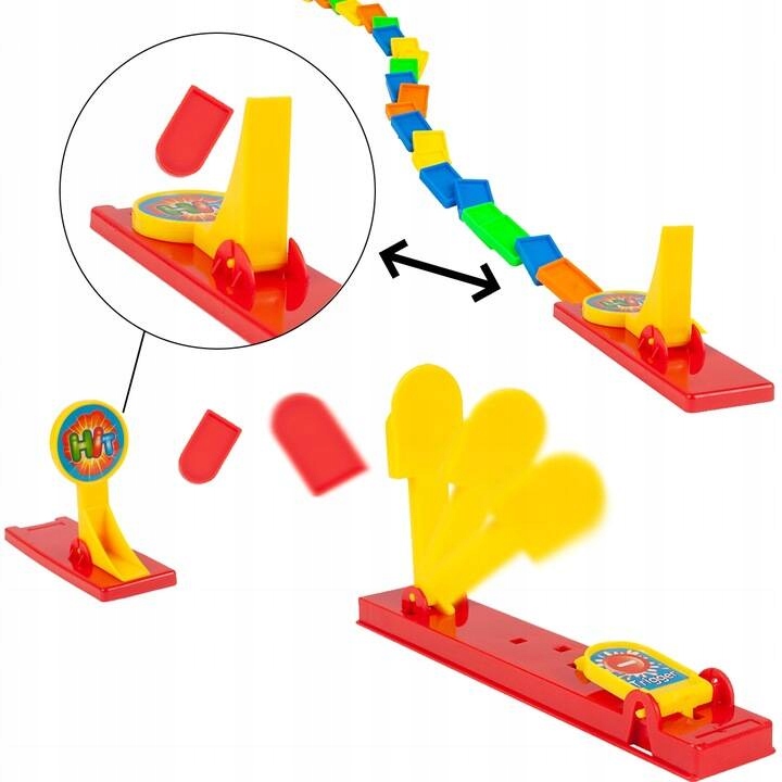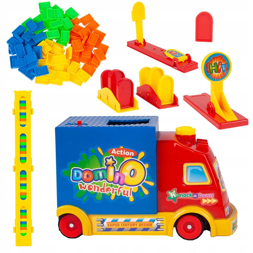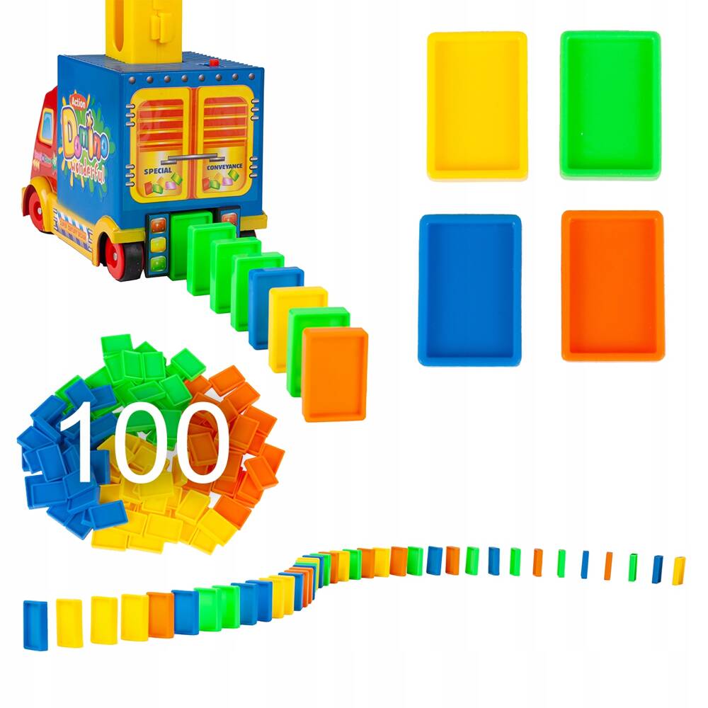 Дополнительные элементы оборудования, такие как рычаги, пусковые установки, замки и т. д., позволят вам строить увлекательные маршруты, доставляющие много часов отличного удовольствия. Блоки Домино 100 штук + машина + препятствия. Вы можете создать дорожку длиной более 2 метров.