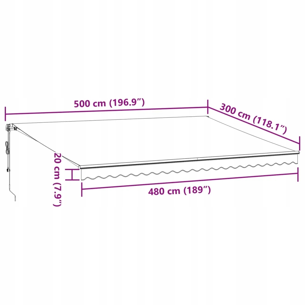 - Общее количество размеров: 500 x 300 см (длина x)