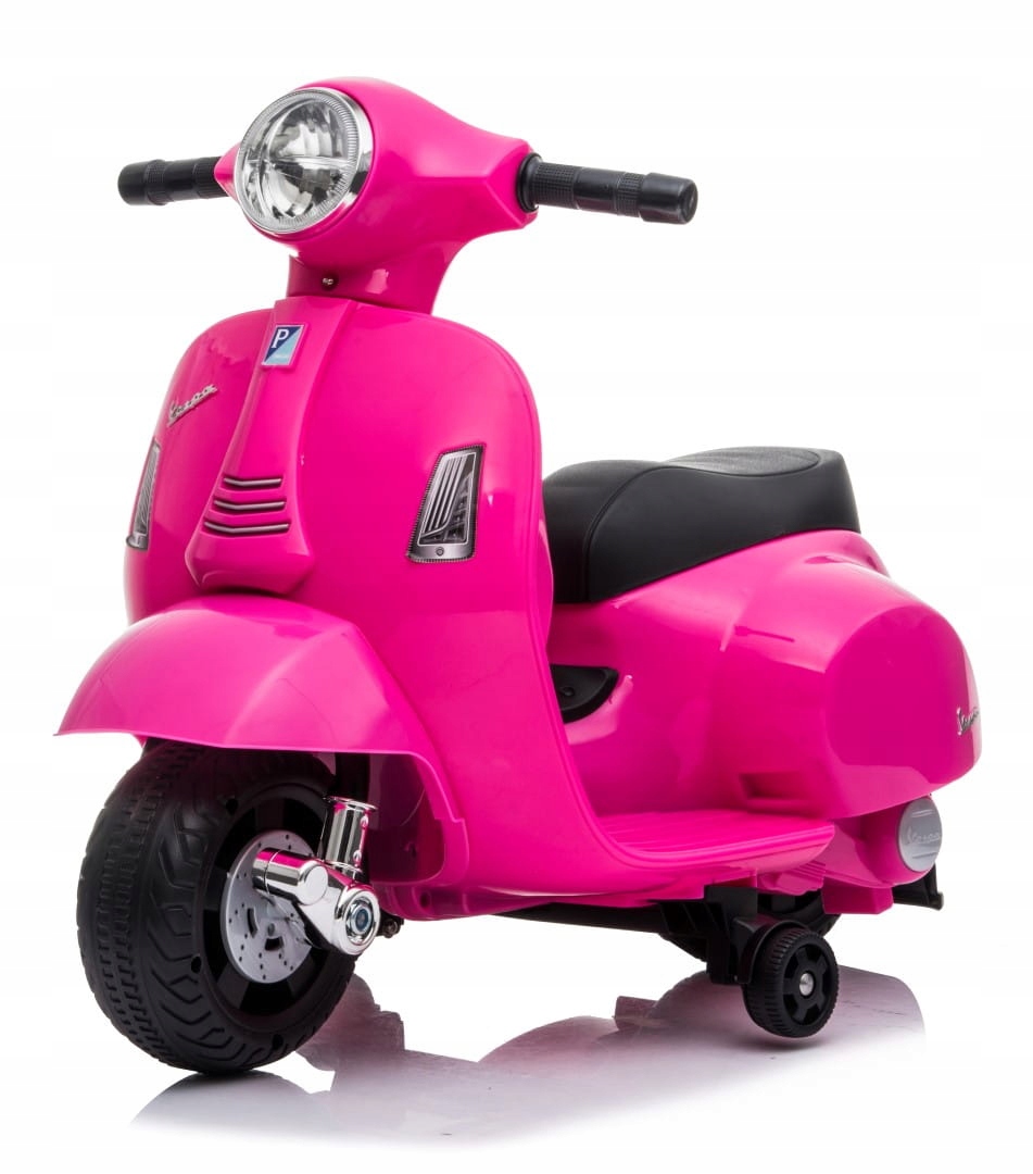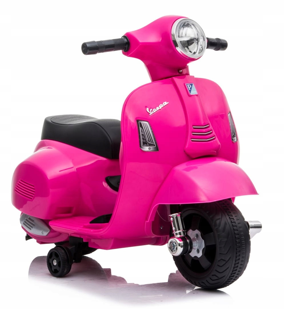Самокат Vespa – это устройство, созданное в виде райдера. Питание от аккумулятора, оснащено двигателем, соответствующим его размерам. Спереди и сзади установлена светодиодная лампа. Все сделано пудрово-розового цвета.
