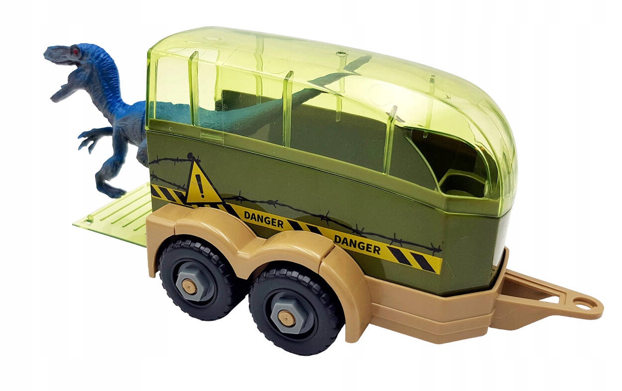 - Внедорожник + прицеп со съемной клеткой + хищный динозавр + отвертка для сборки и разборка