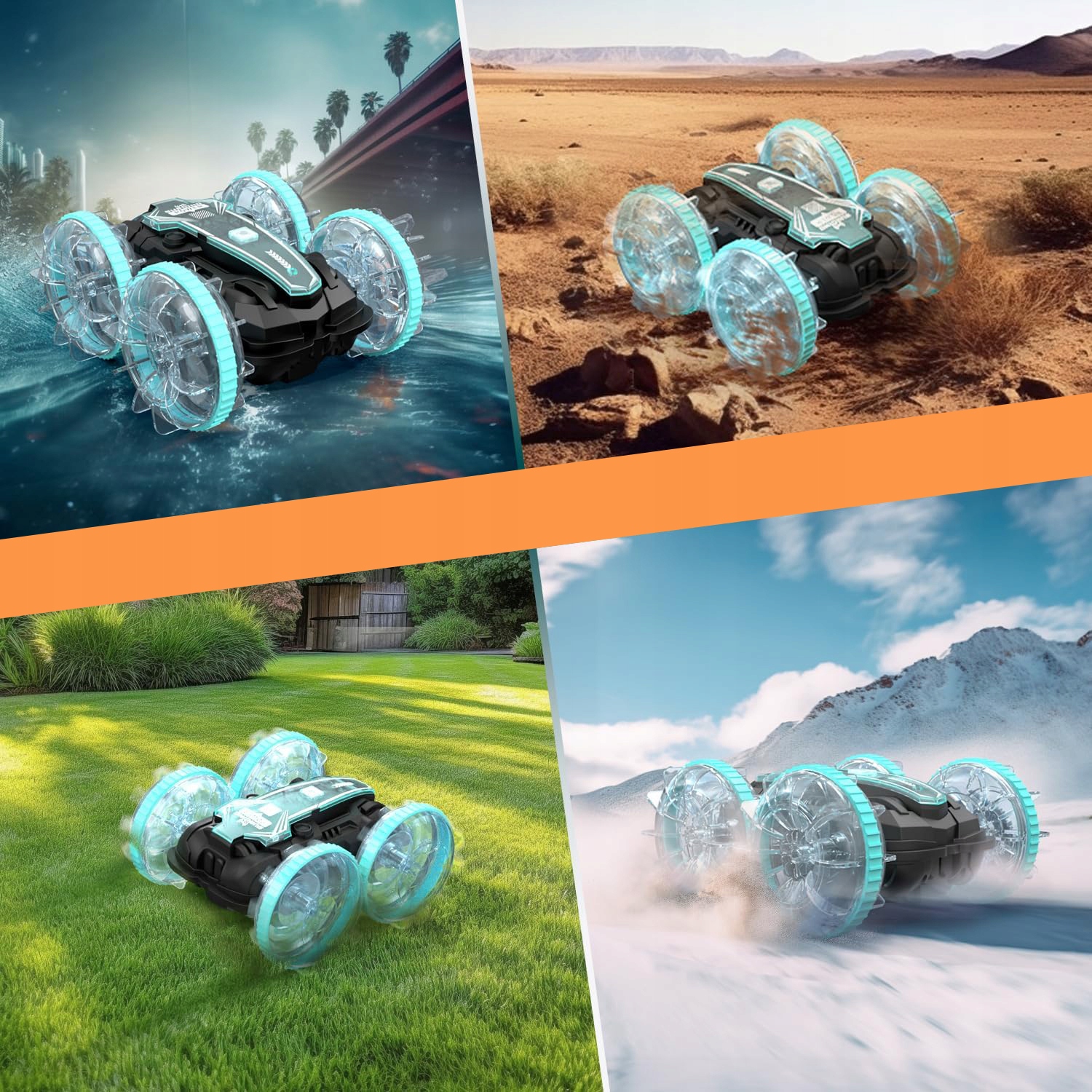 🎉Захватывающие акробатические номера: Приготовьтесь к захватывающей акробатике и бесконечным развлечениям! Этот автомобиль-амфибию можно вращать на 360°, поэтому его можно легко вращать и вращать. Более того, он может совершать захватывающие прыжки на 180°, что делает игру еще более захватывающей. Кроме того, радиоуправляемая машинка устойчива к падениям и трещинам.