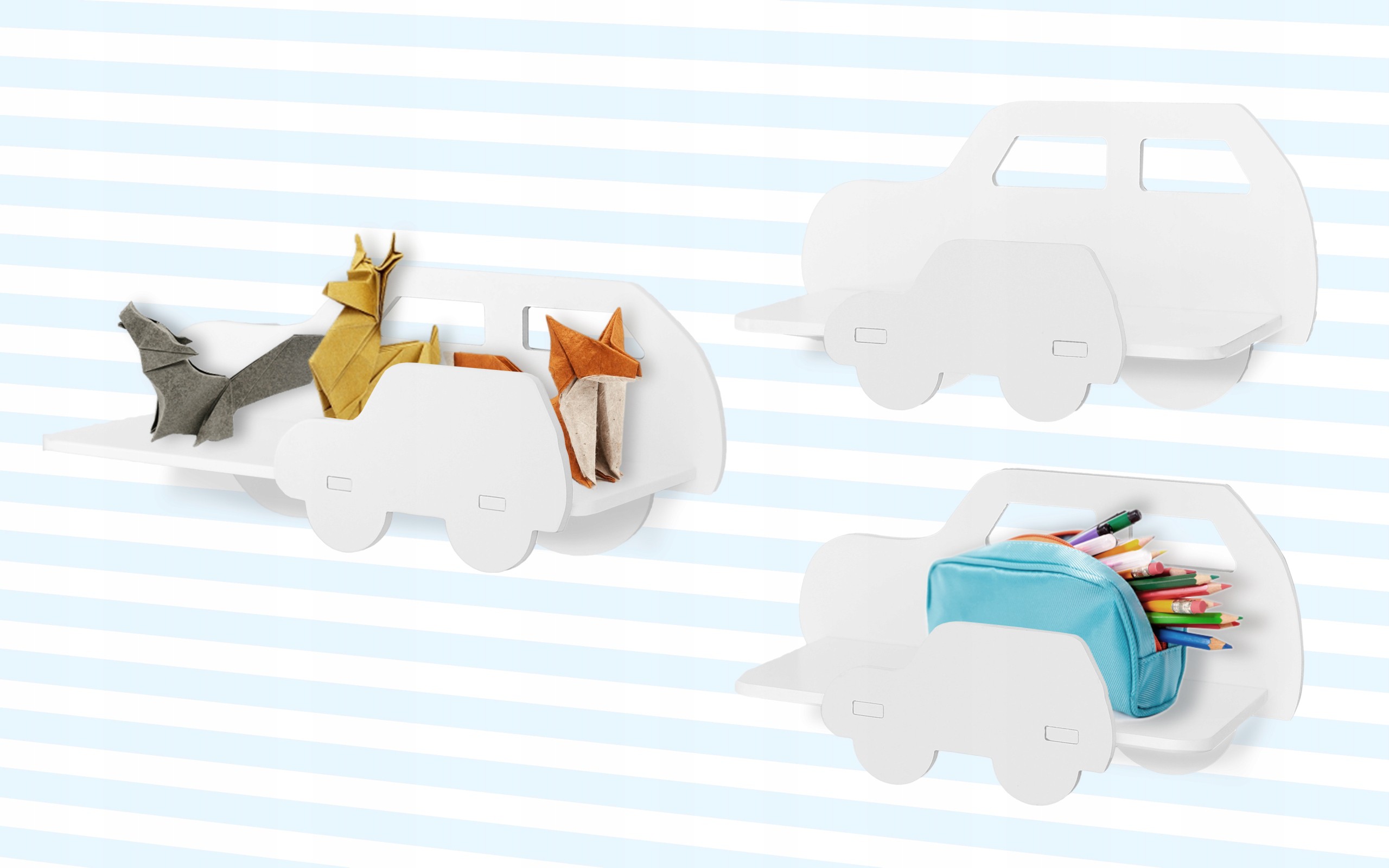 Представляем Вам новинку! Полки в форме машинки украсят детскую комнату каждого мальчика. Изготовленные из плиты МДФ, покрытой высококачественной краской, они обеспечивают долговечность и красивый внешний вид.
