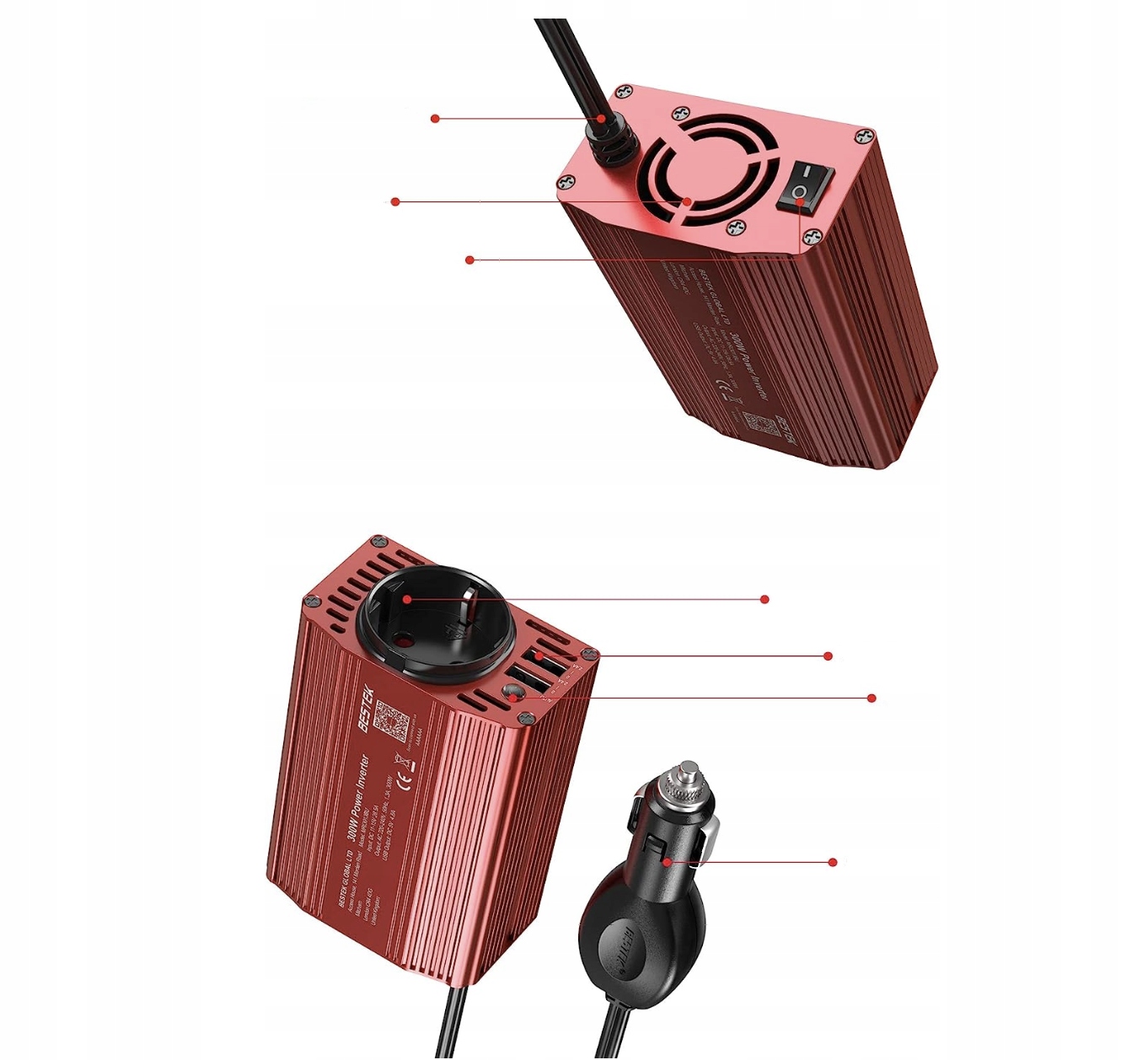 Автомобільний інвертор BESTEK 300 Вт, 12 В - червоний