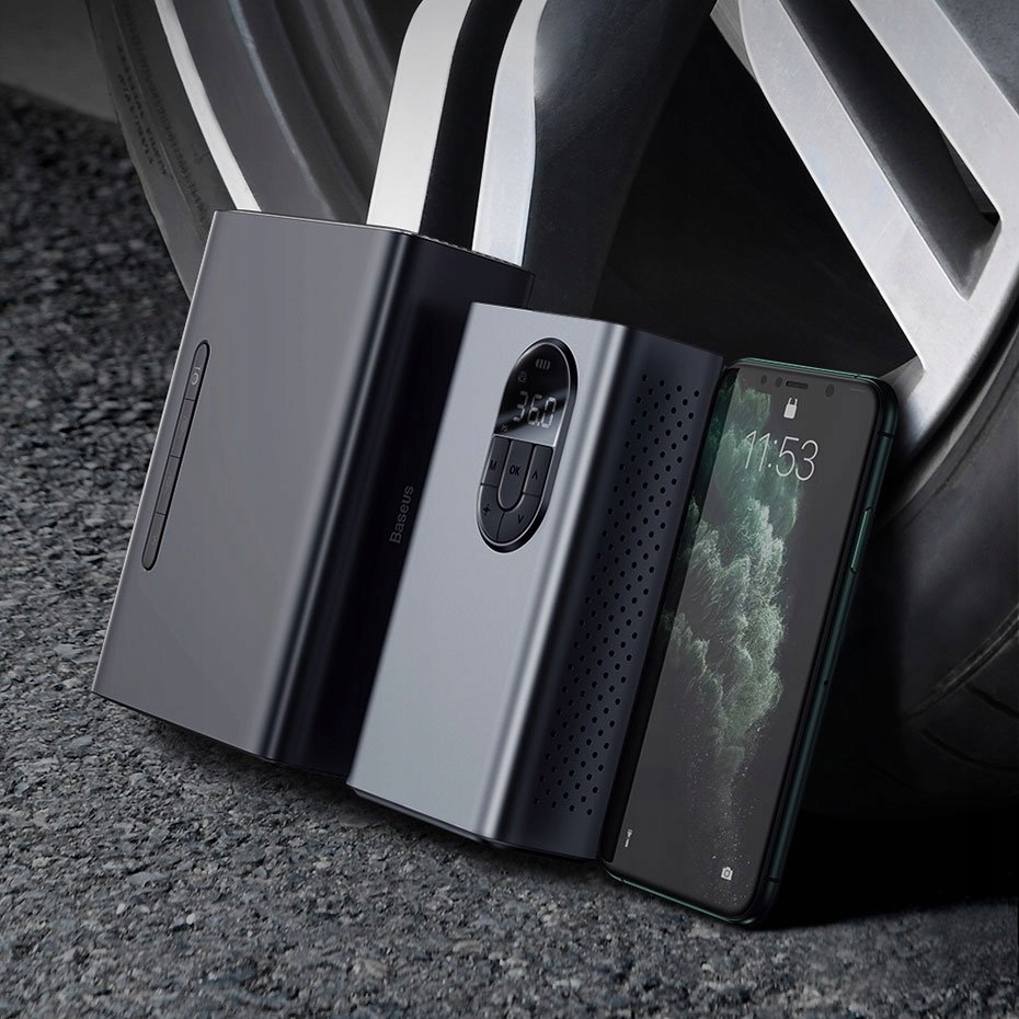 По размерам этот насос похож на павербанк, поэтому он не занимает много места внутри автомобиля. Его емкость составляет 30000 мАч. В комплект также входит аккумулятор емкостью 2400 мАч, а это значит, что при зарядке больше не нужно подключать еще один кабель. Зарядка от 0 до 2,0 бар занимает всего 240 секунд!