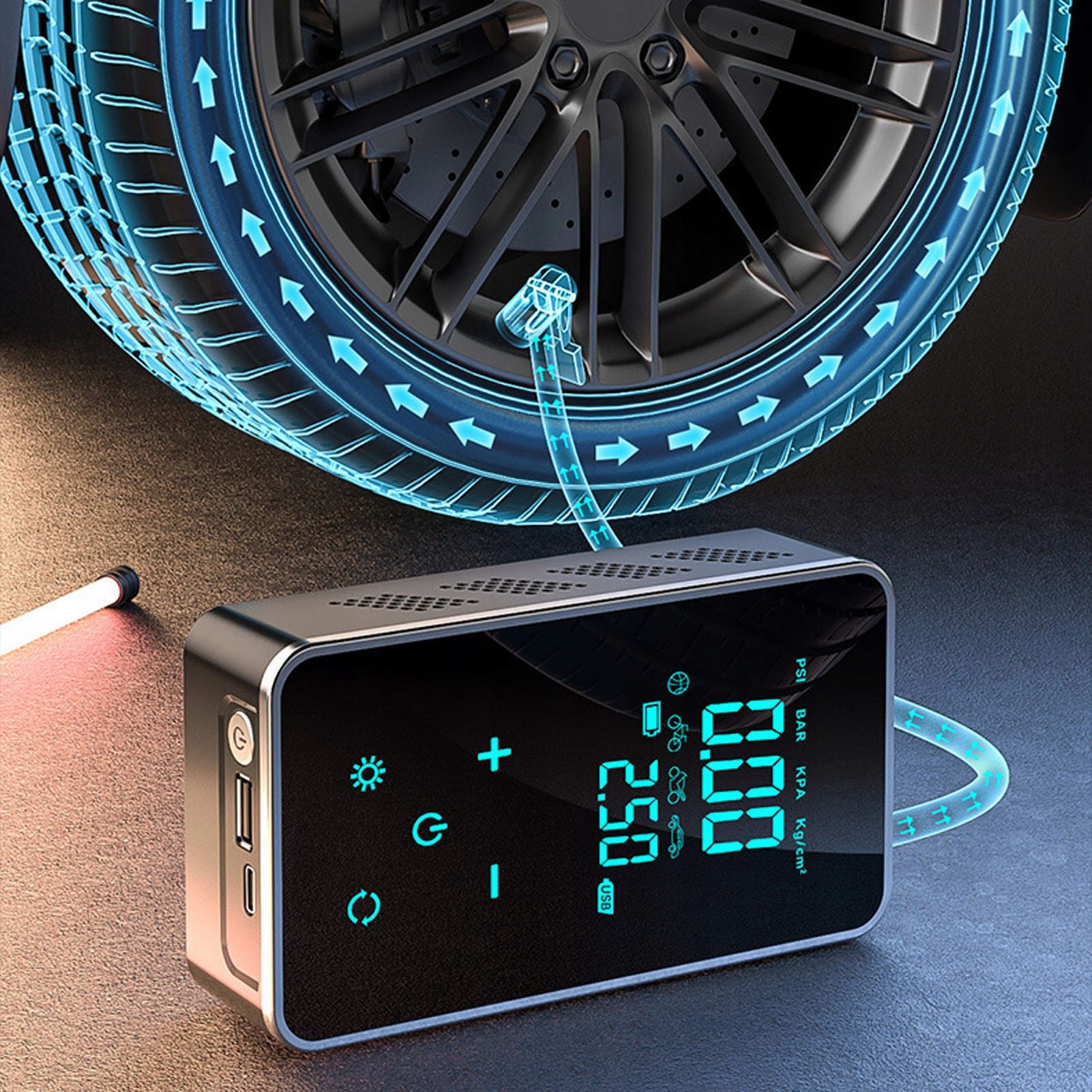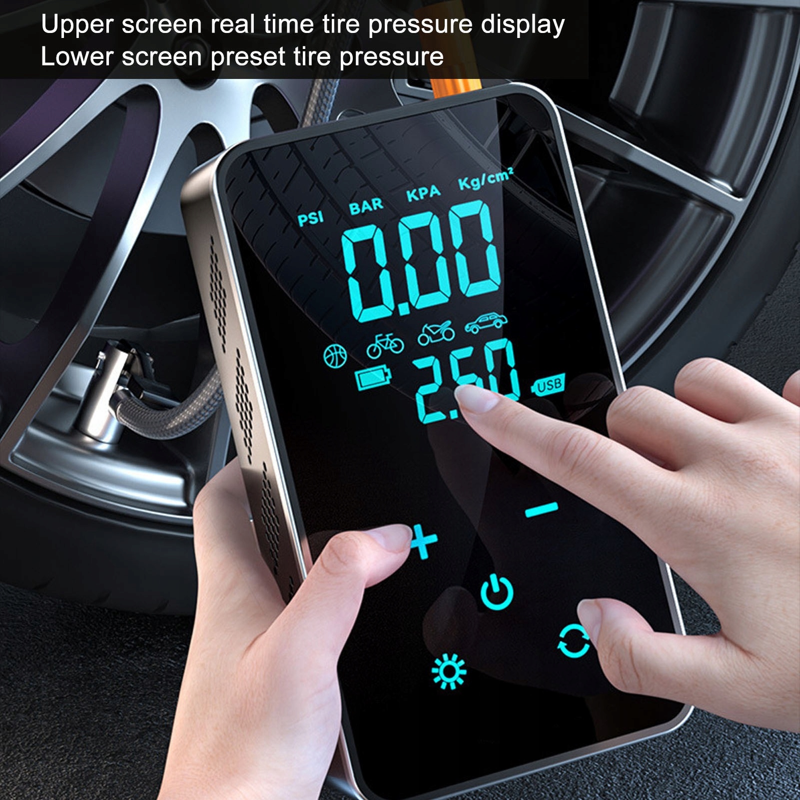 4. Цифровой дисплей: этот беспроводной насос шин оснащен цифровым экраном и сенсорным экраном, обеспечивая отображение реального давления инфляции, чтобы избежать чрезмерной инфляции или инфляции.