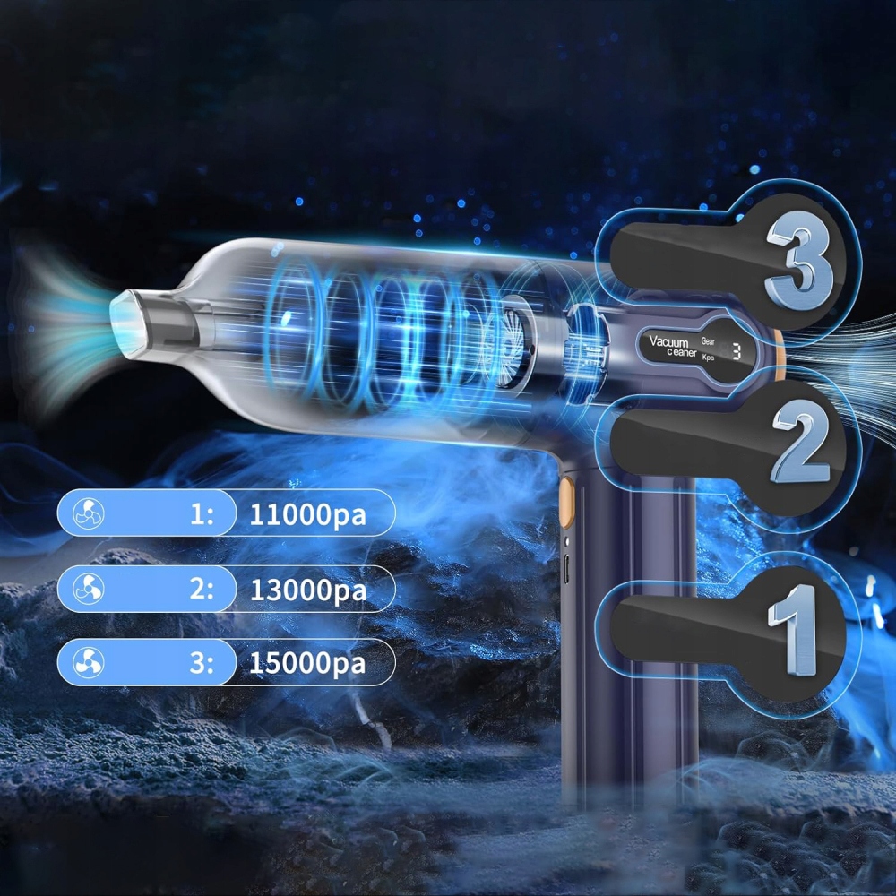 💫 - Он оснащен сверхмощным двигателем и сверхмощностью всасывания 9000 Па, который может эффективно и быстро поглощать пыль, остатки пищи, частицы, шерсть домашних животных и т. д.