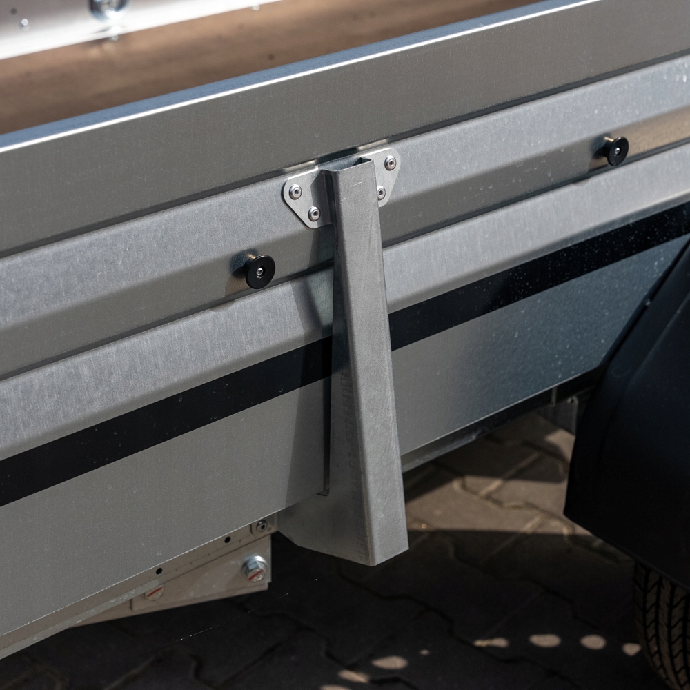 Сплошные, повышенные трейлеры с сильным дизайном для повседневного использования. Увеличенная грузоподъемность, все алюминиевые стороны открылись, что увеличивает возможности прицепа в области использования - ее также можно использовать в качестве эвакуатора. Оснащен простой системой загрузки и профессиональными замками. Широкий ассортимент аксессуаров