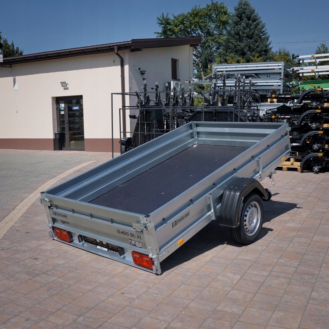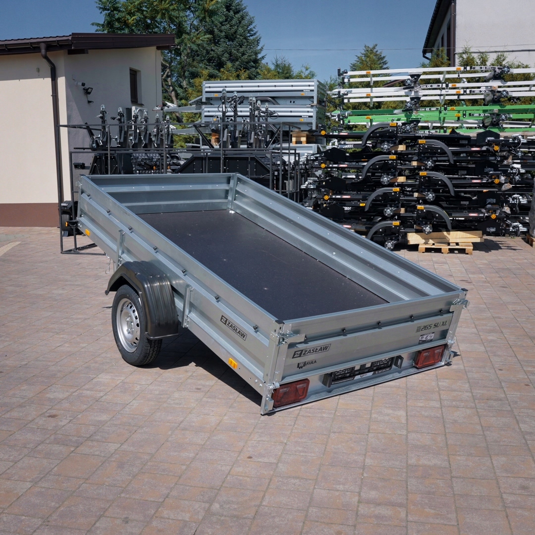 Zaslaw Freight Trailers - это современная линия автомобильных прицепов, сделанных из лучших материалов, доступных на польском рынке. Продукты этой категории характеризуются, среди прочего: современный дизайн Берт Холод, продуманная, прочная боковая боковая сторона с компенсацией и розыгрыш, проведенный на оси для большей прочности конструкции. Все компоненты рамков имеют умен, что гарантирует их долговечность и высокую коррозионную стойкость. Модель 265SI XL имеет дополнительную: ось DMC 750 кг, наклонная коробка, а также буфет и система быстрого настила BOD. Он также оснащен: колесо поддержки с ручками для крепления крышки и товаров.