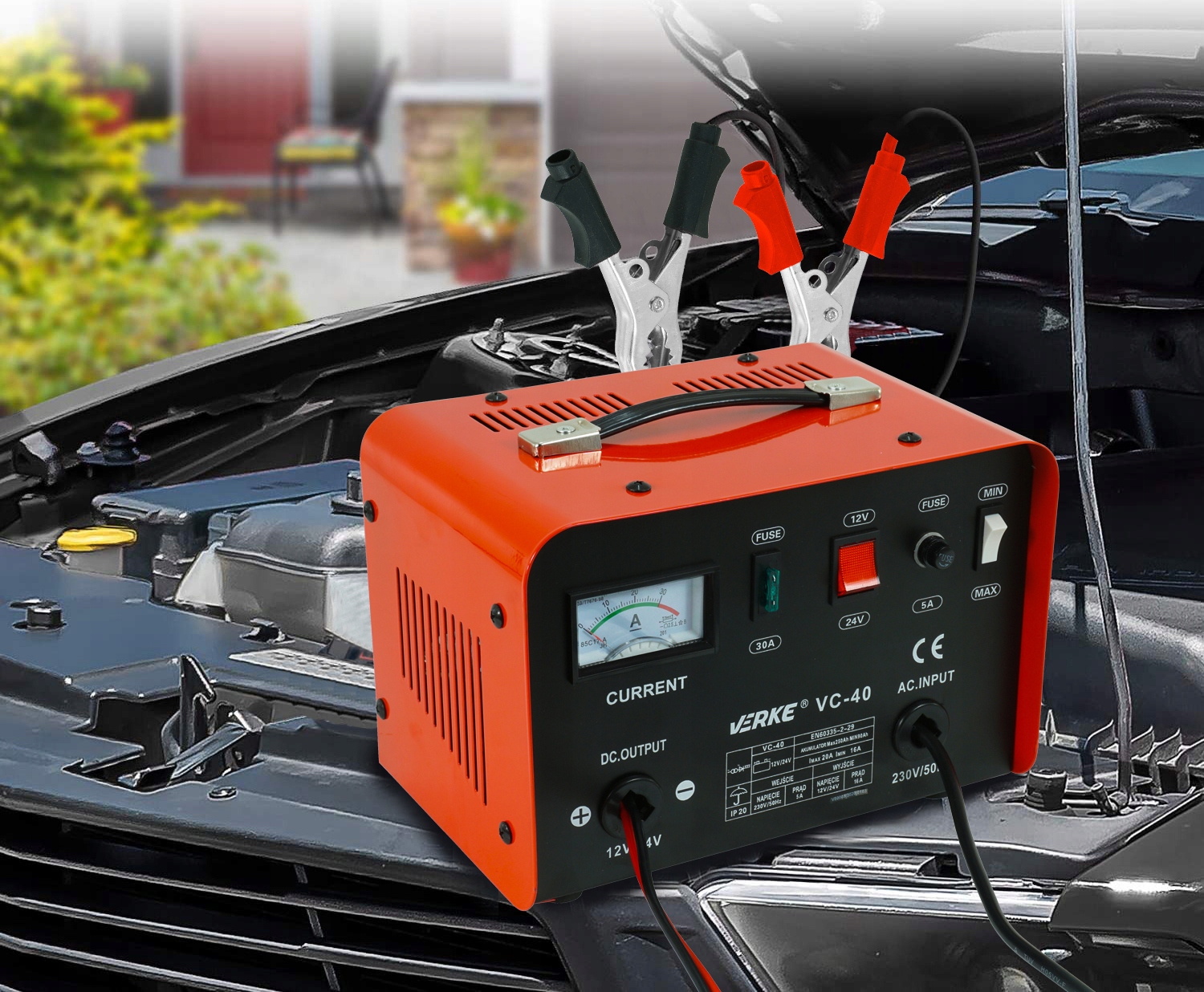 - ТЕХНИЧЕСКИЕ ХАРАКТЕРИСТИКИ - цвет: черный и красный; материал: металл; время зарядки: 4-6 часов; назначение: аккумуляторы: 12 и 24В; максимальный ток: 20А;