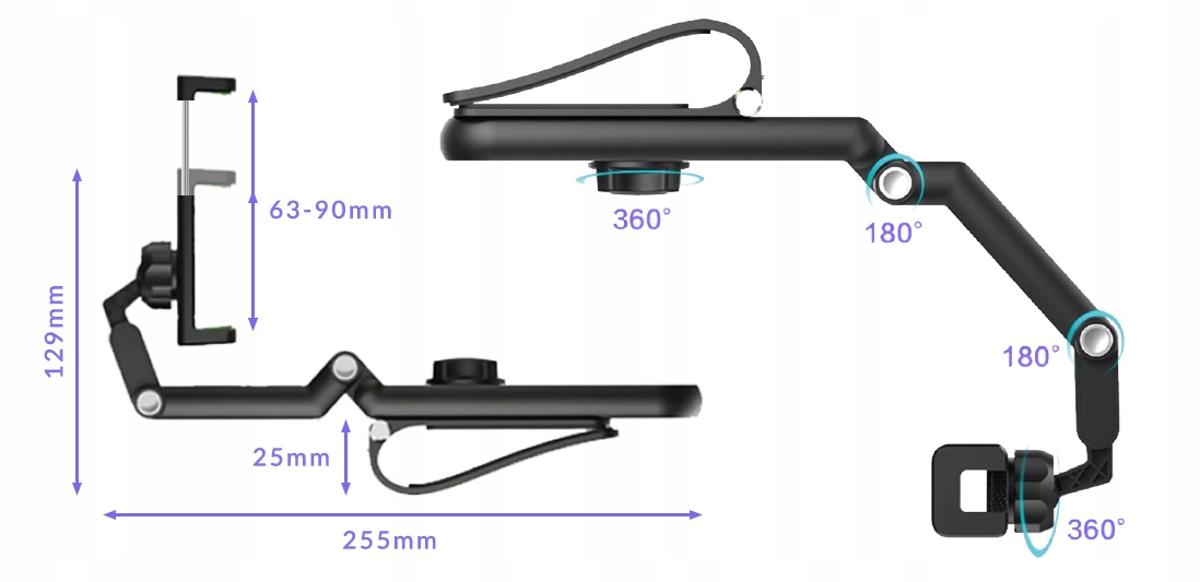 УНИВЕРСАЛЬНЫЙ ДЕРЖАТЕЛЬ ДЛЯ ТЕЛЕФОНА С ЗАЖИМОМ И РЕГУЛИРОВКОЙ - для автомобиля - для солнцезащитного козырька - для кабины - для дома - для полки - для шкафа - для монитора