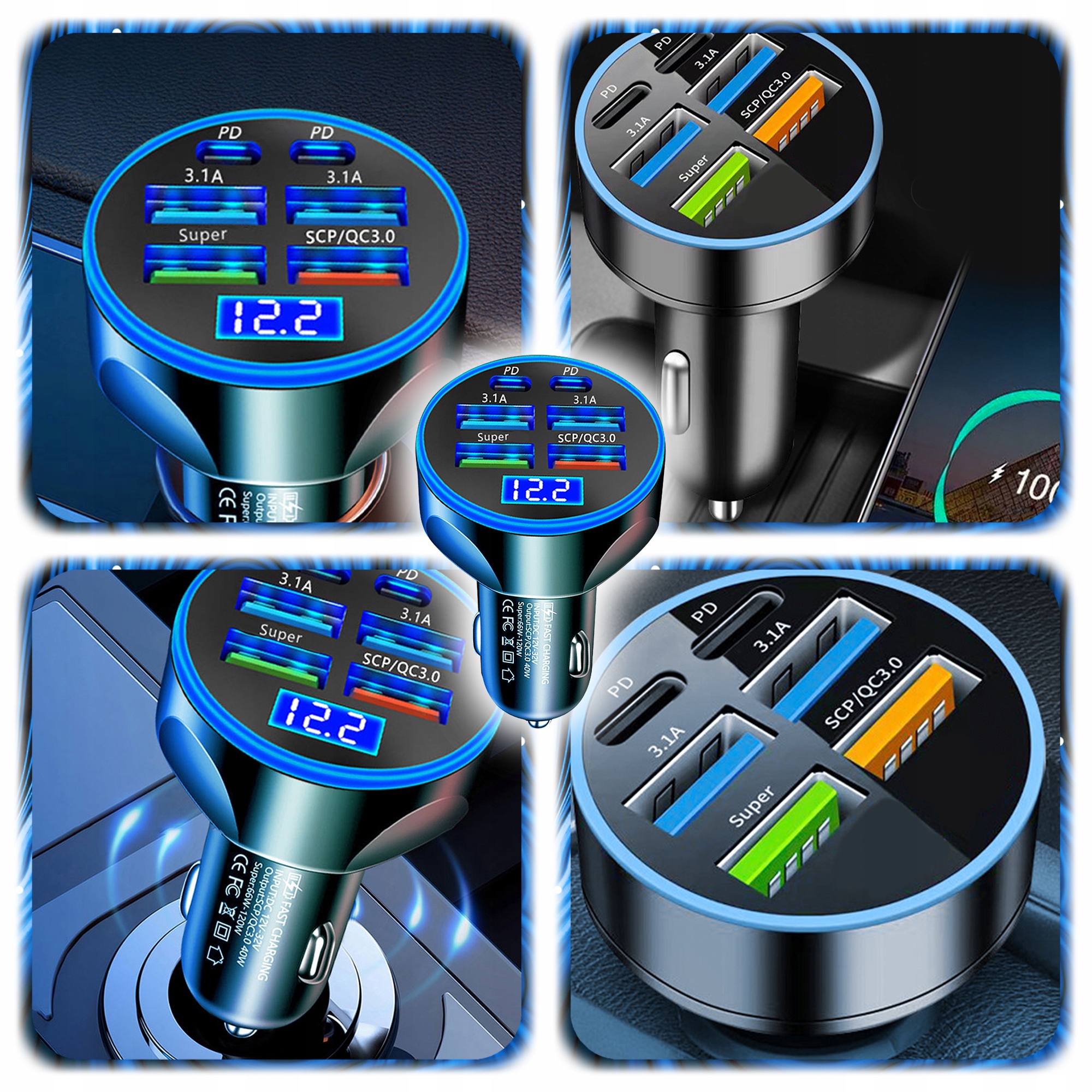 АВТОМОБИЛЬНОЕ ЗАРЯДНОЕ УСТРОЙСТВО ДЛЯ АВТОМОБИЛЯ 6X USB USB-C QC 3.0 PD СТЕКЛО ДЛЯ ЗАЖИГАЛКИ