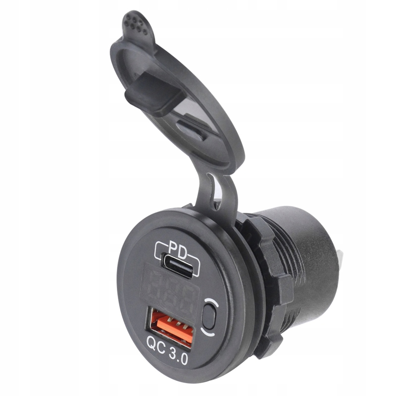 Качественное автомобильное зарядное устройство, предназначенное для легковых и грузовых автомобилей. Имеет 2 порта зарядки, USB-C PD и USB-A QC 3.0. Зарядное устройство оснащено маскировочной крышкой, переключателем и светодиодным дисплеем, показывающим напряжение. Маскирующий клапан оснащен более тонким слоем, который показывает отображаемое значение даже в закрытом состоянии. Легкая сборка обеспечивается благодаря контргайке и штырям «+» и «-» для гнездовых разъемов 6,3 мм, которые также входят в комплект.