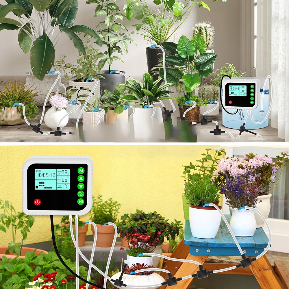 ✔ Меню программирования: Программируйте систему ирригации завода и настройки будут автоматически сохраняться во внутренней памяти. Пользовательские настройки и программы остаются в памяти даже после отключения питания. Вам не нужно перепрограммировать таймер полива каждый раз, когда вы заменяете батареи. Интегрированный контроллер оснащен большим ЖК -дисплеем и интуитивно понятным пользовательским интерфейсом, который очень легко считывать и программировать. 15 горшечных растений. Подходит для орошения газонов, дворов, садов, поливных овощей, подвесных корзин, горшечных растений, цветочных слоев, теплиц и т. Д. Растения растут лучше, когда вы поливаете их медленно и равномерно. Предотвращение образования сифона в розетке с водой, которая предотвращает предотвращение сифона, когда бак воды выше, чем растения. Когда уровень воды низкий, ирригационная система выпустит звуковой сигнал, чтобы напомнить вам о необходимости добавления воды. Звуковой сигнал также появится, когда уровень воды низкий или зонд забит. Достаточно добавить воду или очистить зонд.