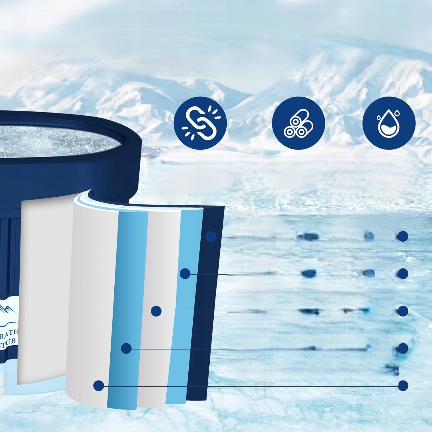 Ванна, изготовленная из 5 -слойной изолированной ткани , долговечна и устойчива к температурам от -68 ° C до +140 ° C. Благодаря этому это будет работать как для ледяных ванн, так и для расслабляющих сеансов в теплой воде.