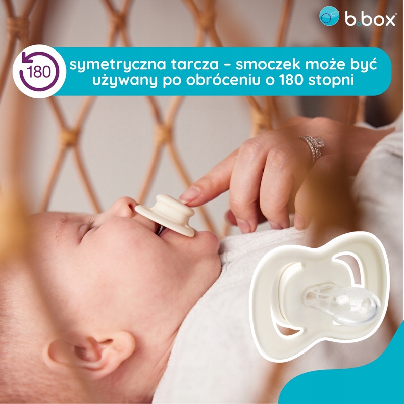 Соски для новорожденных и младенцев, который позволит родителям успокоить ребенка, и во время прорезывания зубов будет отличным, успокаивающим блюдами. Силикон мягкий и гибкий, поэтому он дополнительно помассирует воспаленные десны и принесет облегчение. Благодаря вдумчивой структуре и используемому материалу симметричный соски B.box полностью безопасен и позволяет ребенку свободно дышать. Размер был адаптирован к самым молодым пользователям и идеально адаптируется к форме рта новорожденного и ребенка.