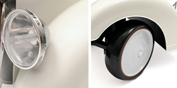 Наша ретро -поездка - это больше, чем просто автомобиль - это полный игровой центр. Оснащенный реалистичным рулевым колесом с рогом, открытым хранилищем для игрушек, имитацией топливного бака и элегантным серебряным грилем, станет любимой игрушкой вашего ребенка.