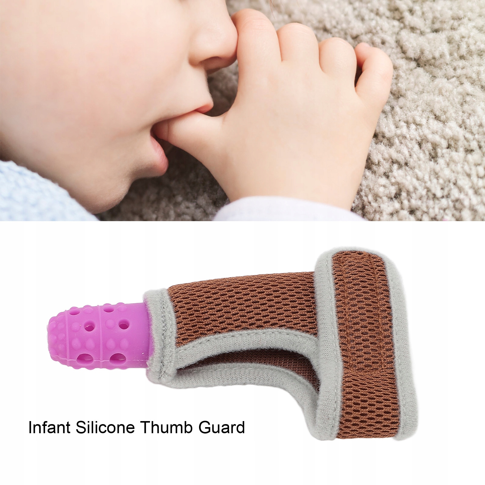 Функция: 1. Ребенок, большие пальцы, кормилка: средства для всасывающей чашки для большого пальца сделаны из пустого силиконового и упругого материала из удобной сетки для комфорта и воздухопроницаемости, а ремешок для запястья предназначен для предотвращения выпадения продукта из ребенка.