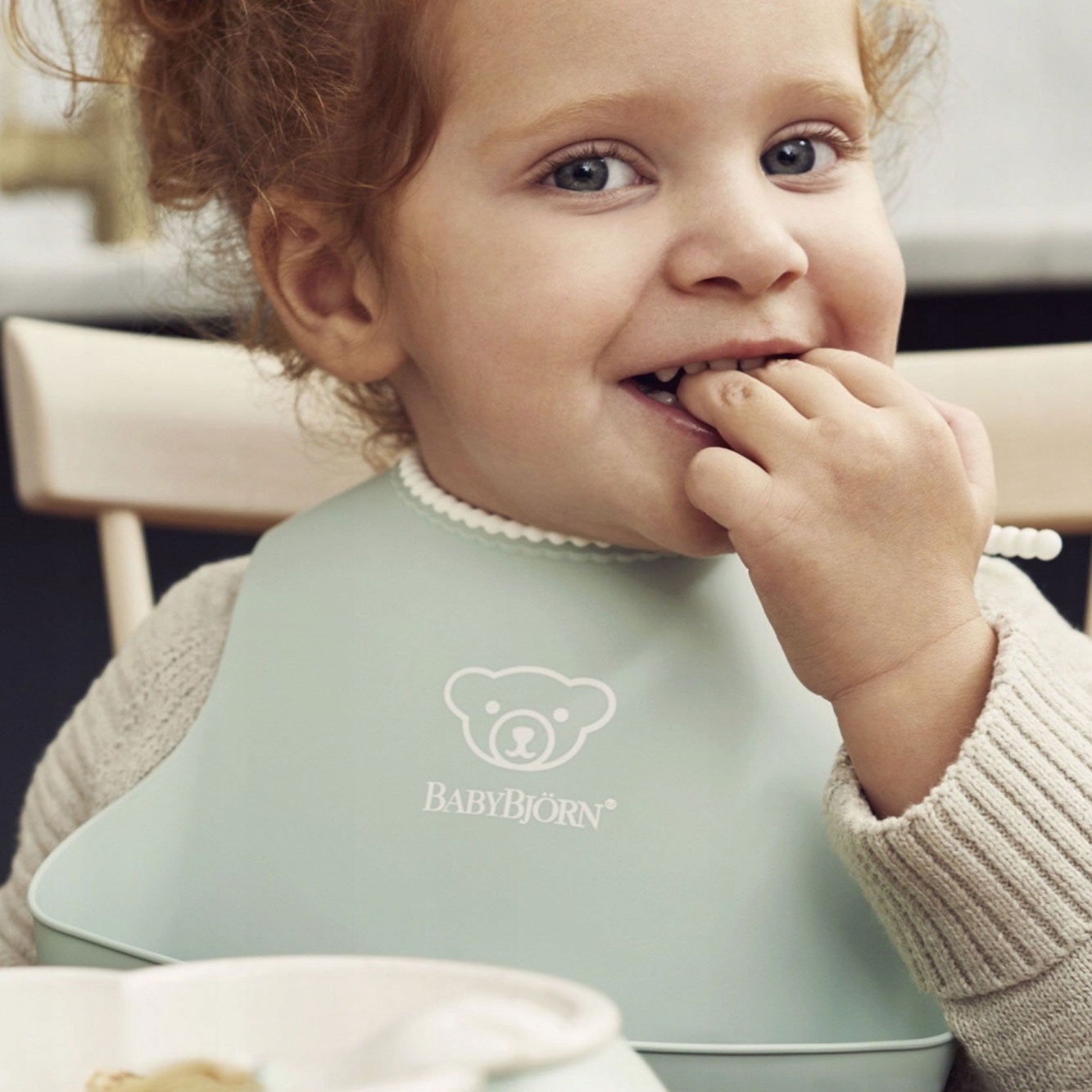 - Babybjorn Bib сделан из пластика, утвержденного для контакта с едой в соответствии со стандартами, действующими в Европе (EEC) и США (FDA)