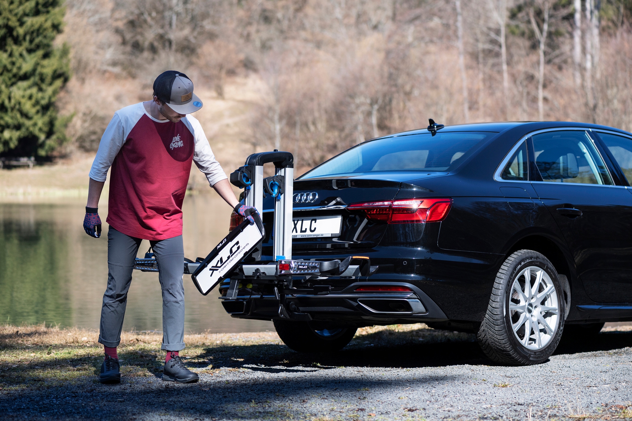 - функция наклона позволяет открыть задний люк с установленными велосипедами.