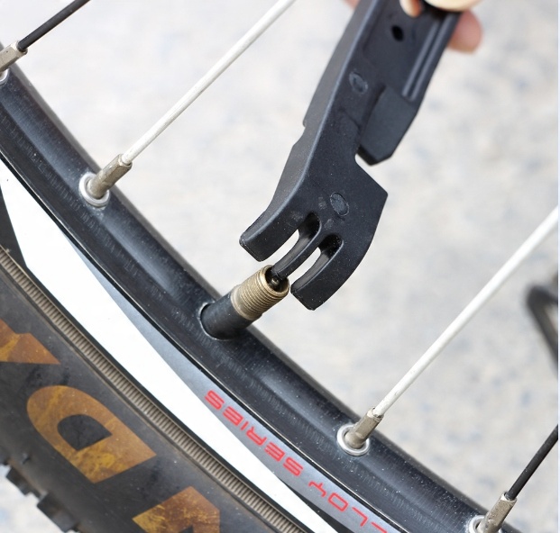 Можно использовать в качестве рычага для шин, клещей для цепи или для спуска воздуха из шин.