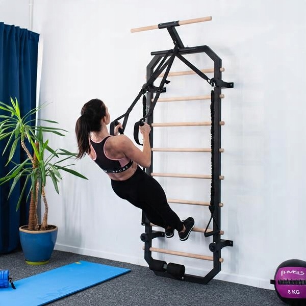 ✨DW2708 выглядит очень эстетично и вписывается в любой интерьер. Гимнастическая лестница имеет элегантный дизайн. Сочетание черного цвета и деревянных балок позволяет DW2708 гармонировать с любой стеной. Гимнастические ленты и ленты также выполнены в черном цвете. Набор DW2708 – это не только тренажер, но и украшение дома.✨