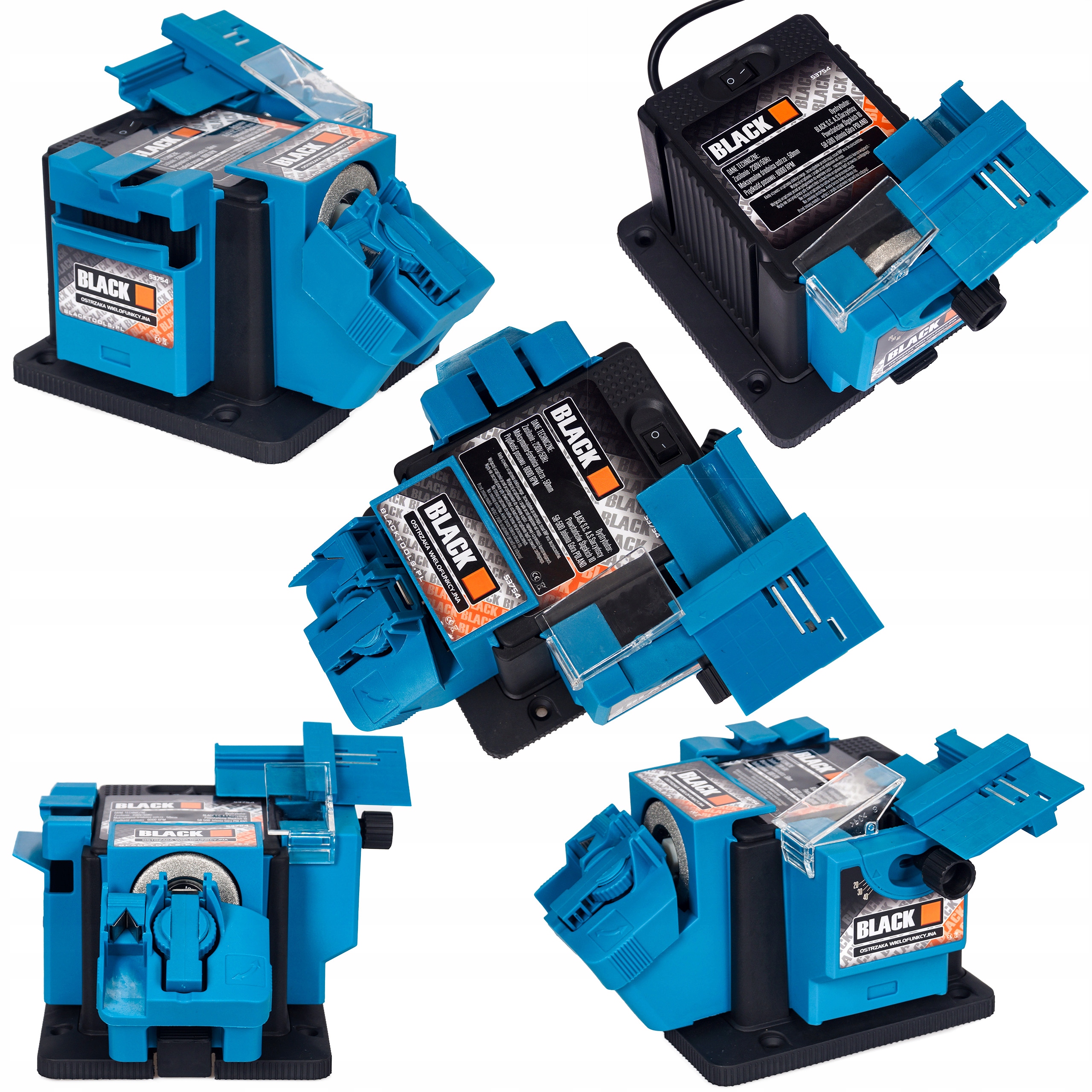 Точилка состоит из основания устройства, точилки для ножей и ножниц, точилки для стамесок и стамесок и точилки для сверл. Для работы просто прикрепите соответствующую насадку, поместите изделие в подходящее место и следуйте инструкциям. инструкции.