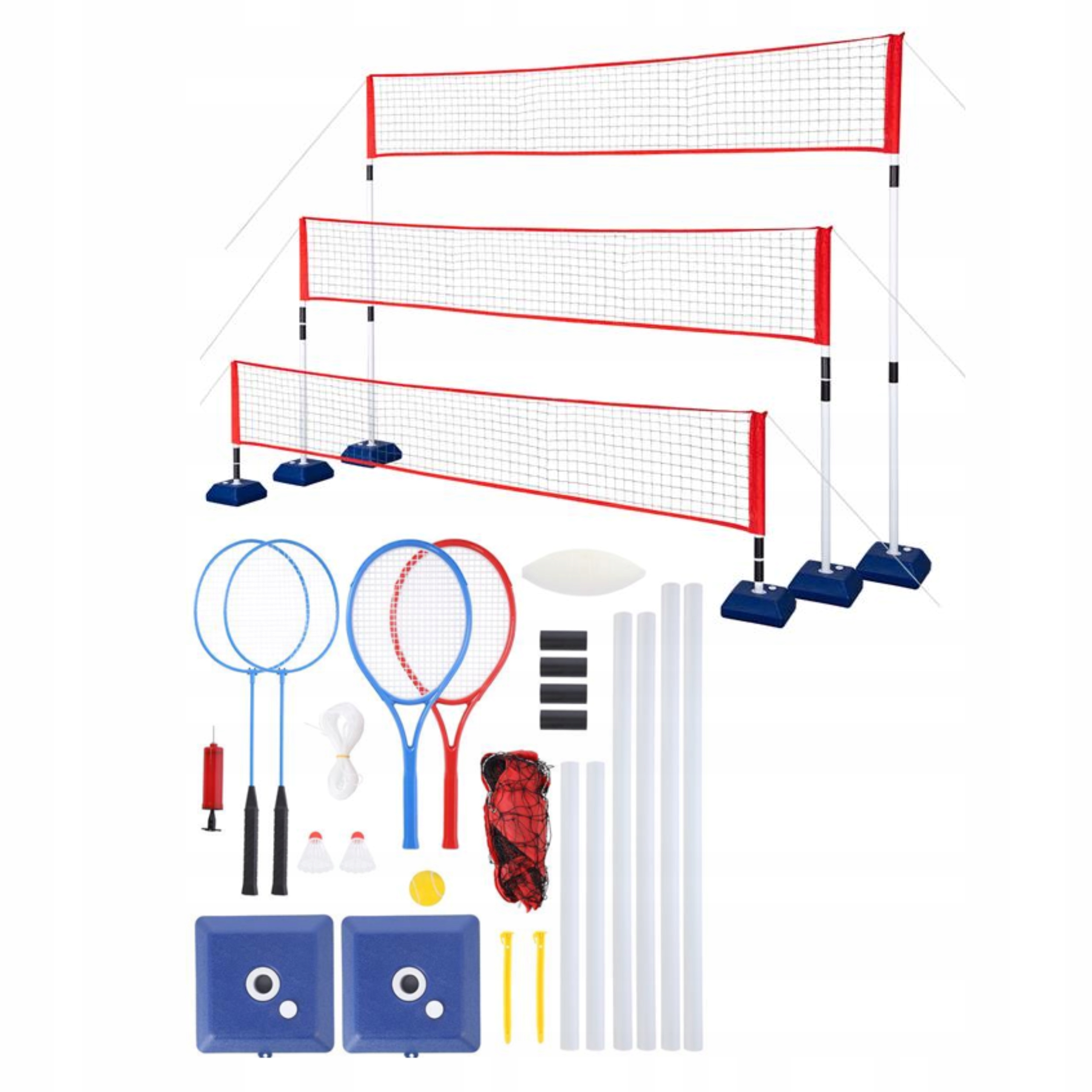 ✨siatka na najniższym poziomie (77 см) umożliwia grę w tenisa. И в этом случае NILS удовлетворял потребностям пользователя и гарантированному оборудованию в виде ракет и шаров . Поэтому при покупке nt0300 мы получаем полный набор, содержащий все, что вам нужно, чтобы играть в волейбол, бадминтон и теннис. ✨
