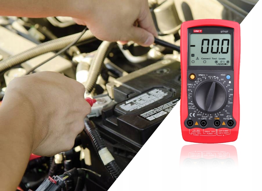 Мультиметр UNIT UT 107 отвечает потребностям измерений в автомобилях даже для очень требовательных механиков. Помимо всех основных функций измерения, таких как измерение переменного/постоянного напряжения, переменного/постоянного тока или сопротивления, он также позволяет измерять скорость вращения в 4-, 6- и 8-цилиндровых двигателях. Эта модель также имеет возможность измерения температуры, частоты тока и даже измерения рабочего цикла импульса, а также очень полезную функцию тестирования батареи 12 В. Руководство пользователя доступно на польском языке.