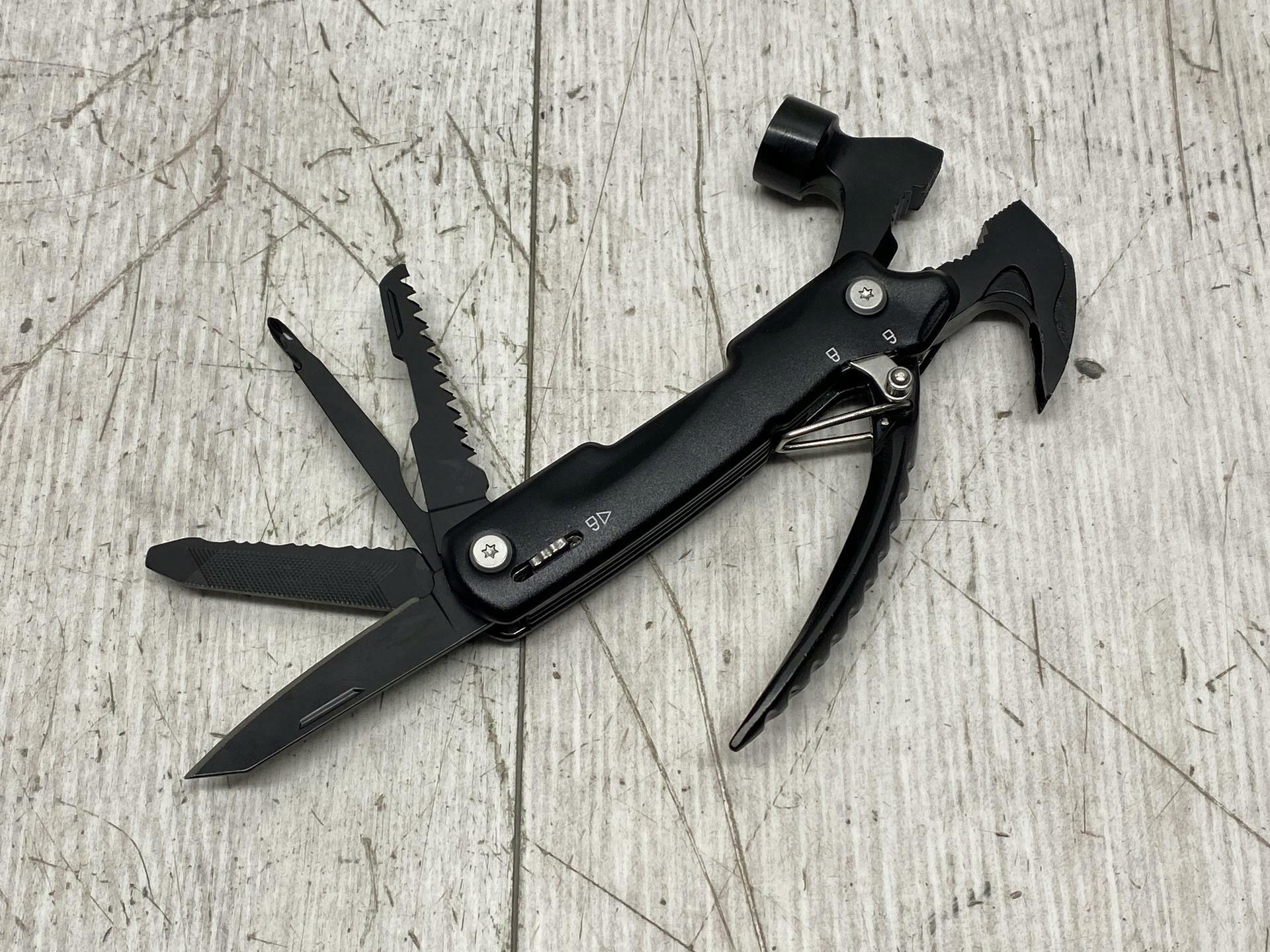 Молотка инструмента Biib с 12 функциями, включая минимальные минимальные, когтя, плоски, обычные плоскогубцы, резка в сборе, резак, пила, новая нож, файл, плоские отвертки, отвертки.