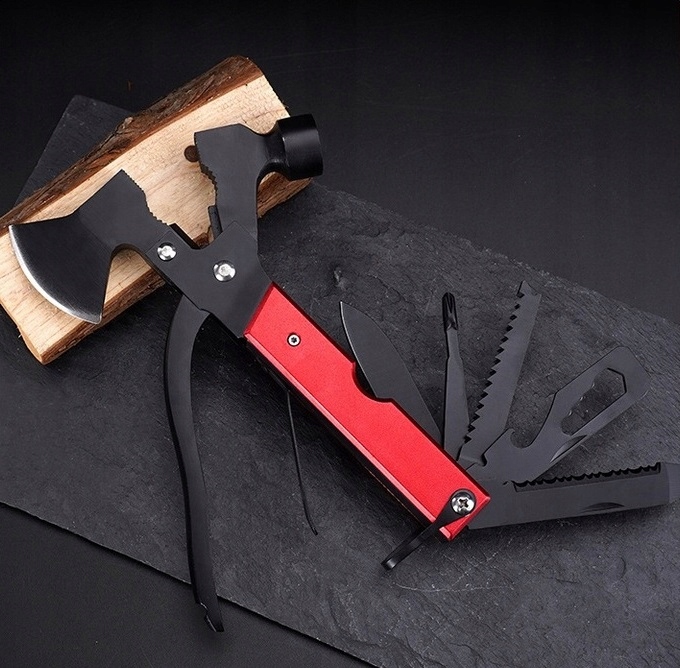 Инструмент напоминает плоскогубцы и имеет форму и функцию молотка и топора. компактное использование