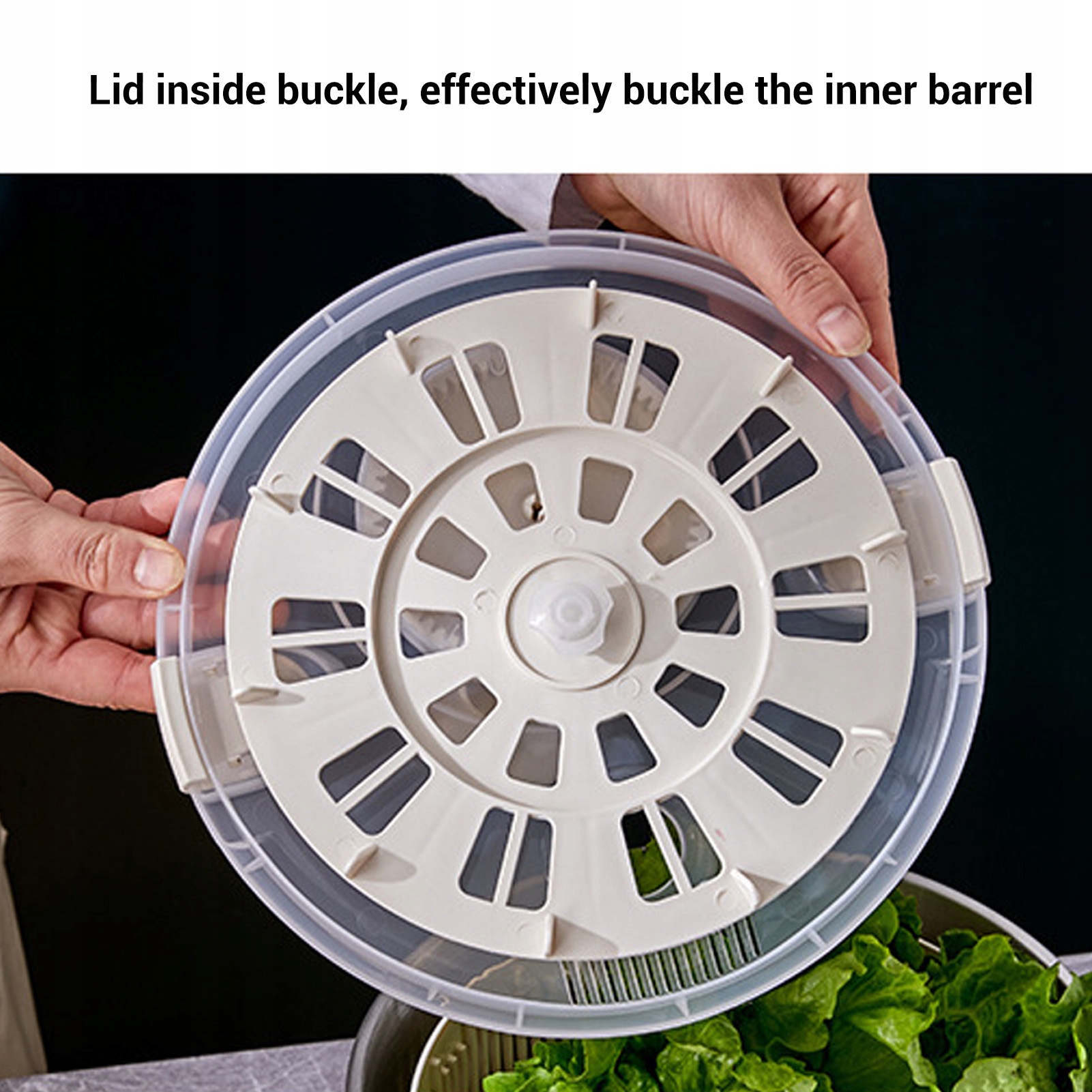 3. Быстрое и простое управление: эта сушилка для салата представляет собой устройство для быстрого ополаскивания и сушки, предназначенное для работы одной рукой. Чтобы начать, просто поверните устройство.
