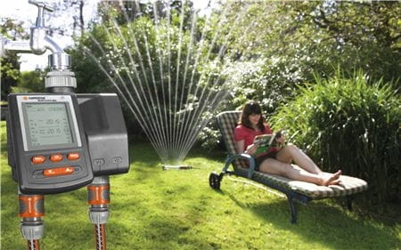 благодаря интуитивно понятной операции и большому дисплею, чтение данных очень проще. Сохраняет воду благодаря возможности соединения датчика дождя и/или датчика влажности садовой почвы с каждым выходом. Оба выхода можно управлять одним датчиком. Контроллер ирригации подходит для 26,5 мм (G 3/4) и 33,5 мм (G1) на вершине 0,5 -12 бар. Устройство требует щелочной батареи 9 В ( рабочего времени около 1 года). Интегрированный уровень заряда аккумулятора указывает на необходимость замены батареи