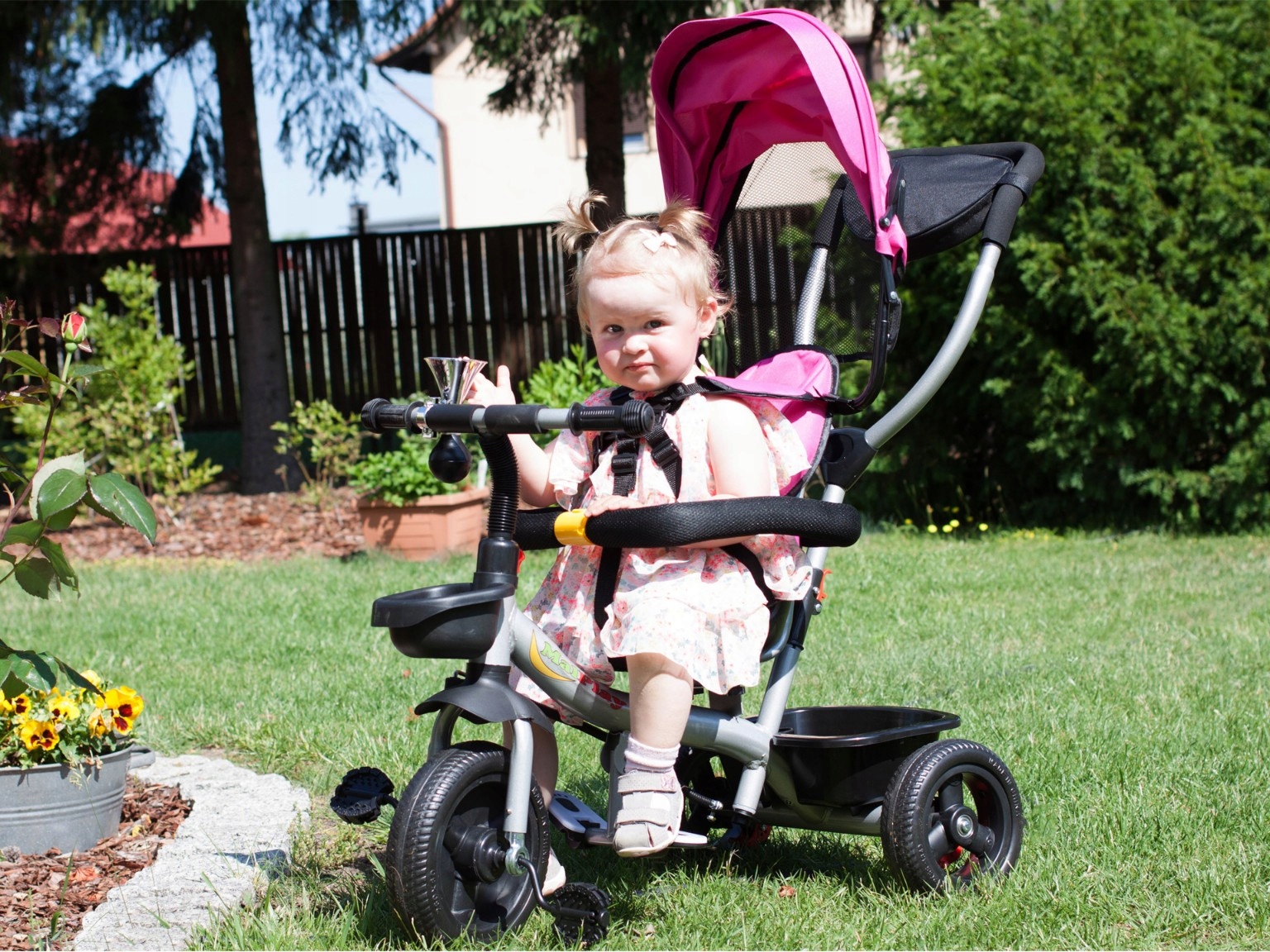 Багатоступінчастий триколісний велосипед з навісом 3в1 Рожеве поворотне сидіння