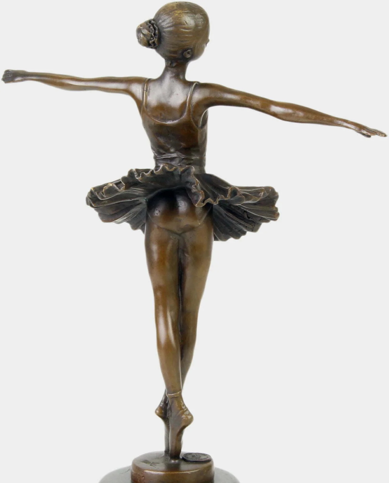 Реалистичная бронзовая скульптура, изображающая балерину, танцующую на точках. Красивая, подписанная скульптура, сделанная из эксклюзивного материала, очень точно, с вниманием к наименьшим деталям. Пометочно на основе черного мрамора. Фигура производит огромное эстетическое впечатление и имеет вечный стиль. Подходит много интерьеров.