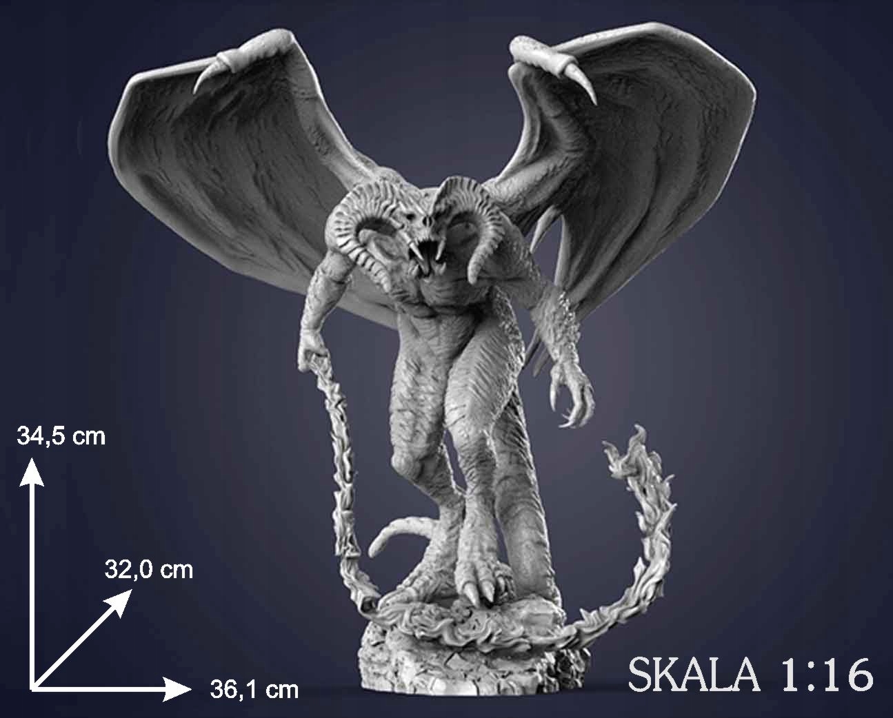 Модель Balrog — это принт высокого разрешения из УФ-смолы. Для печати фигурок я использую смолу премиум-класса. отличается от стандартного тем, что воспроизводит еще лучше детали и является более гибким. Основание напечатано из PLA по технологии FDM. Материалы идеальны для обработки (распиливания, склейки, покраски)