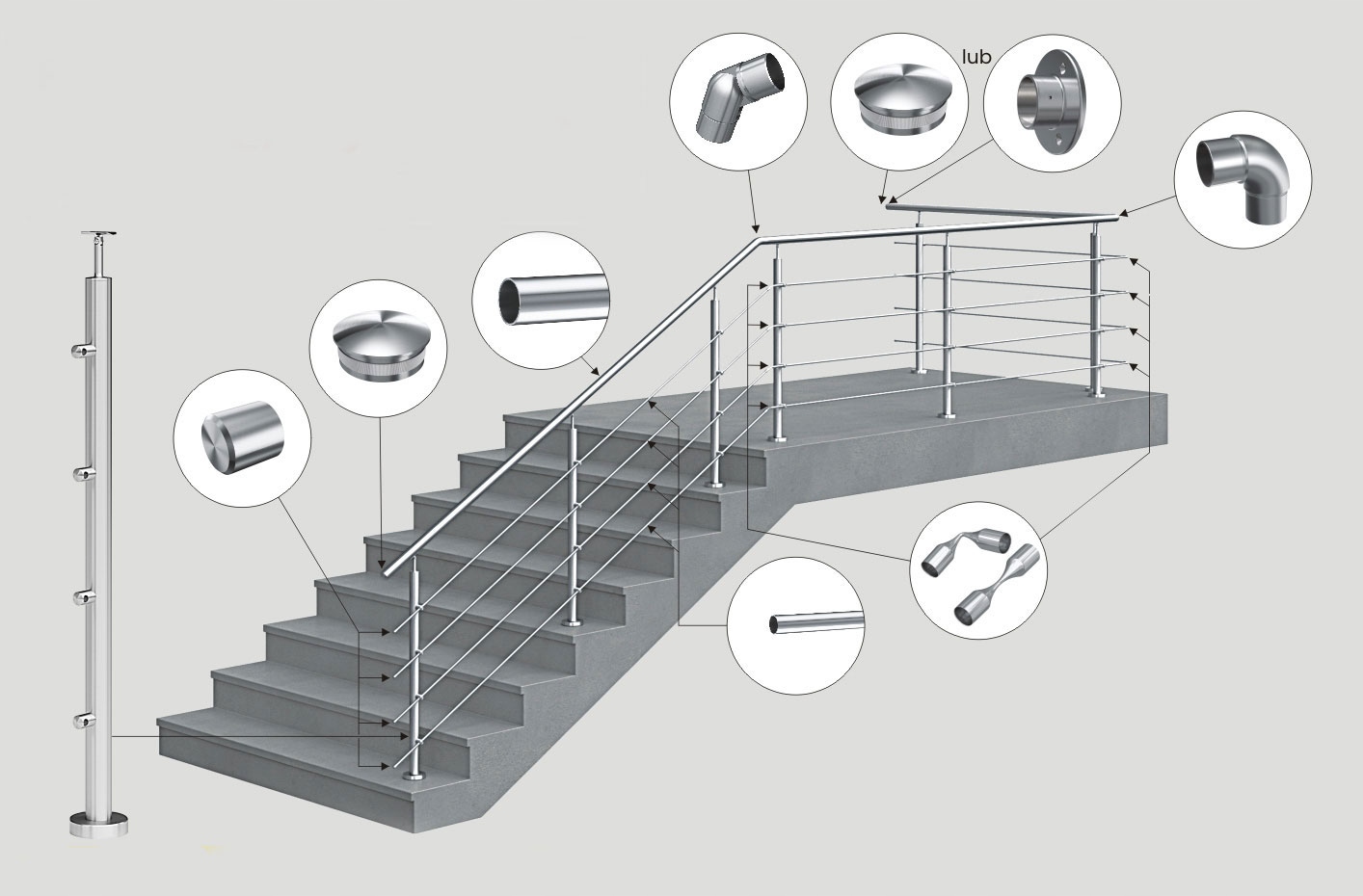 Конструкция балюстрады имеет возможность регулировки углов на перилах и крепления поперечных труб. Благодаря этому техническому решению наша балюстрада универсальна. Балюстрада может быть установлена на лестницах и балконах. Конструкция спроектирована в соответствии с действующими нормами на горизонтальные нагрузки 0,5 кН.