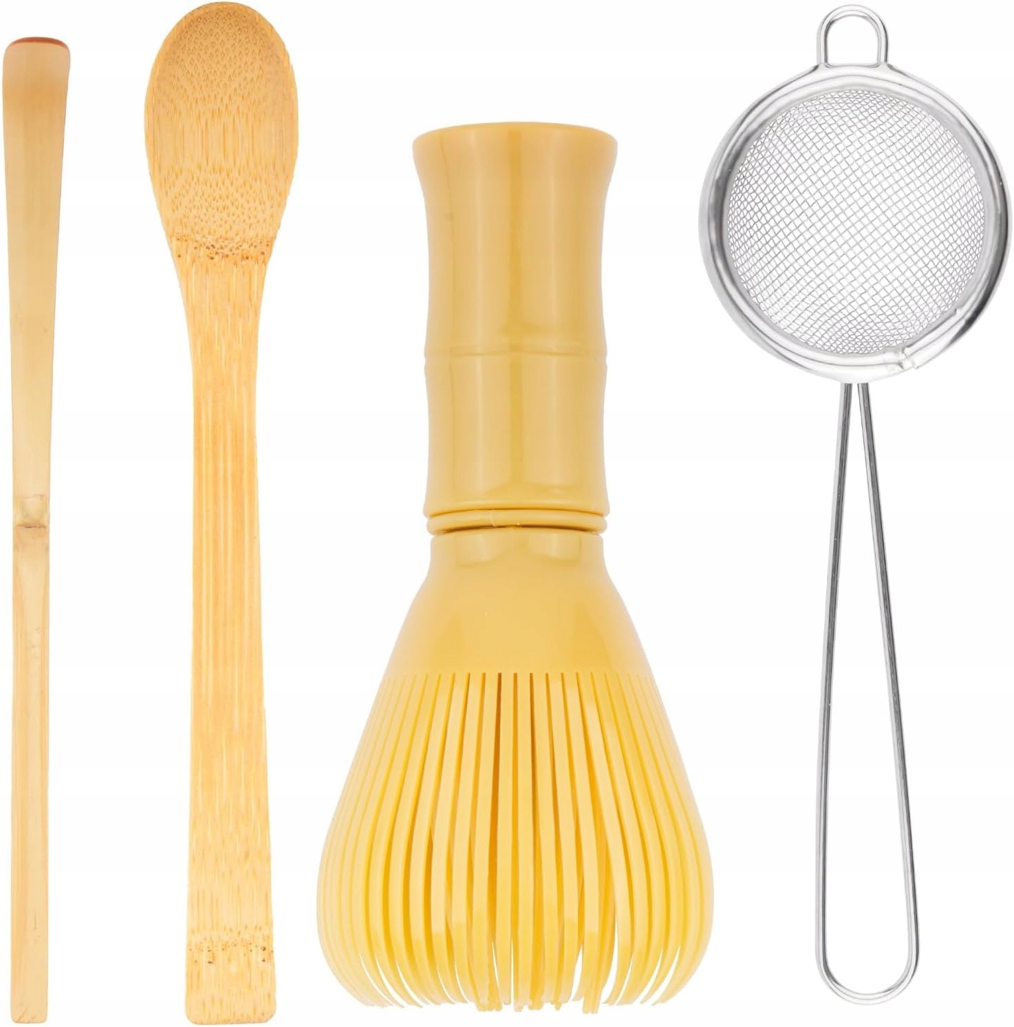 Венчик из прочного материала, бамбуковая ложка и обработка фильтра из нержавеющей стали - эта комбинация обеспечивает удобство и эстетический вид в течение длительного времени.