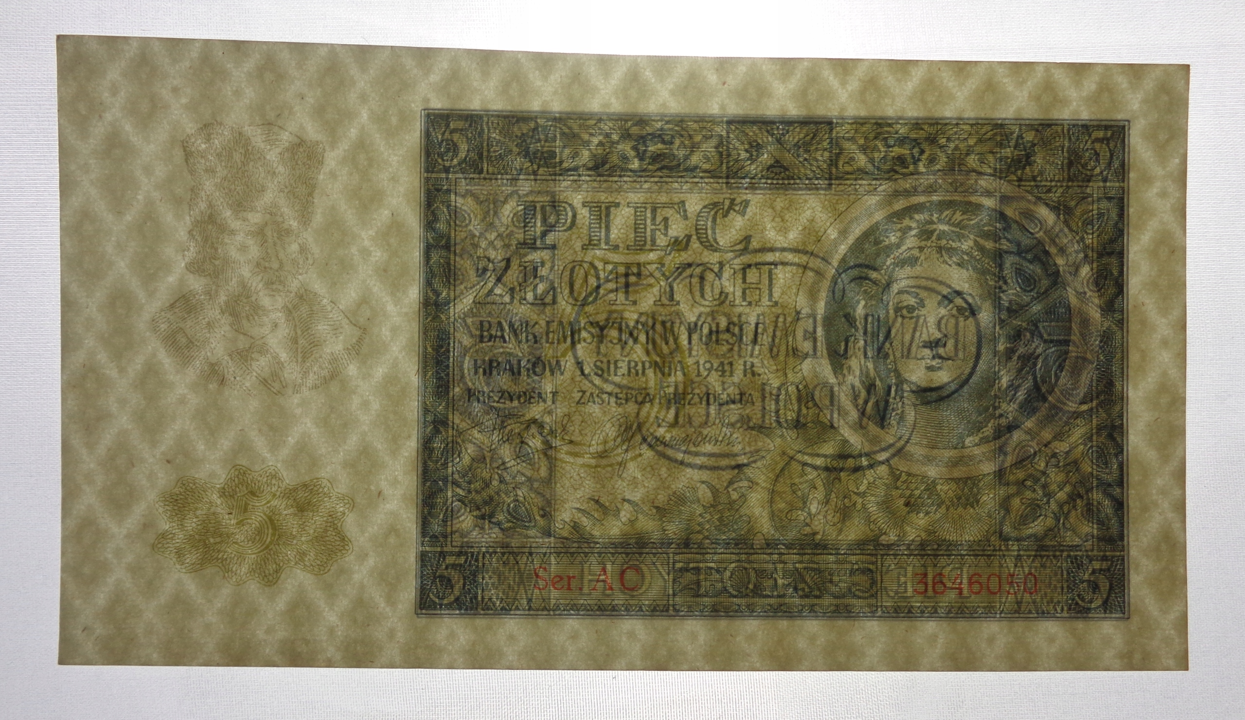Банкнота - Польша - 5 Zlotys 1941 серия AC