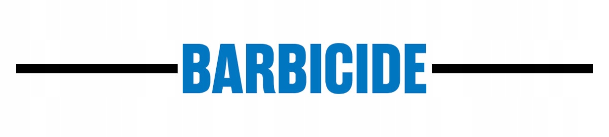 Характерный контейнер BARBICIDE с прозрачной синей дезинфицирующей жидкостью является символом профессионального и качественного офиса.