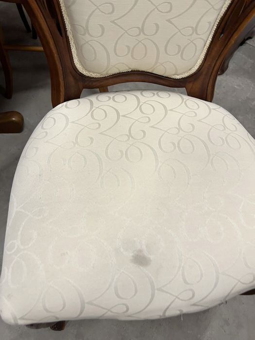 6 стульев с резными спинками и кремовой обивкой (стабильная структура, удобная, обивка для нескольких из них для очистки)