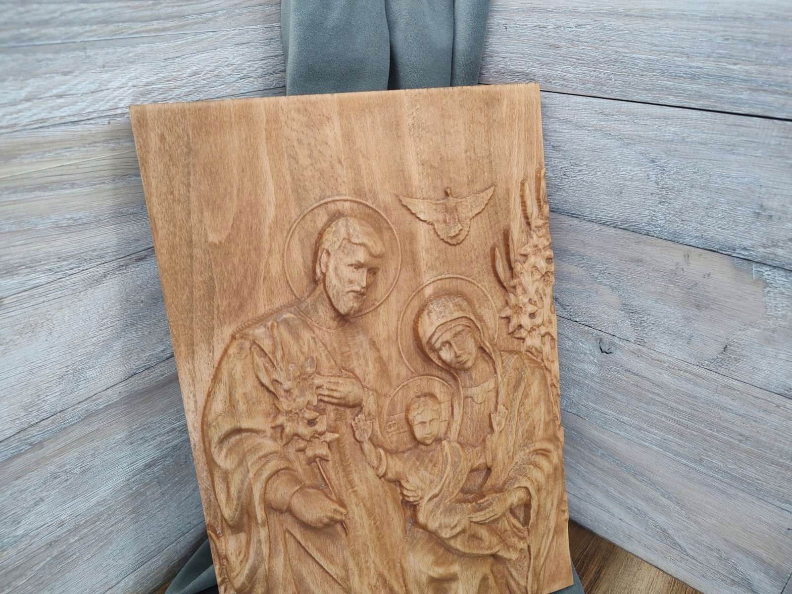 BAS -RELIEF Деревянный Святой Семейство III Ручная подарка Свадьба 40