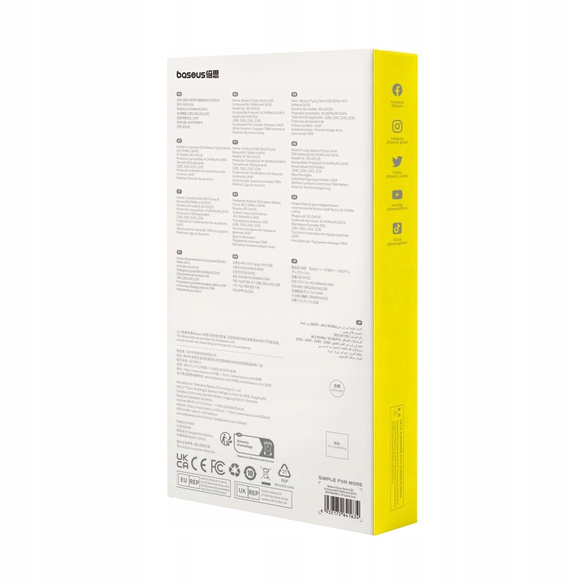 Корпус SSD-накопителей серии Baseus FlyJoy — это универсальное решение для тех, кто ищет совместимость с твердотельными накопителями различных типов и размеров. Независимо от того, используете ли вы диск M.2 NVMe или M.2 SATA, чехол обеспечит надежное соединение и оптимальную производительность.