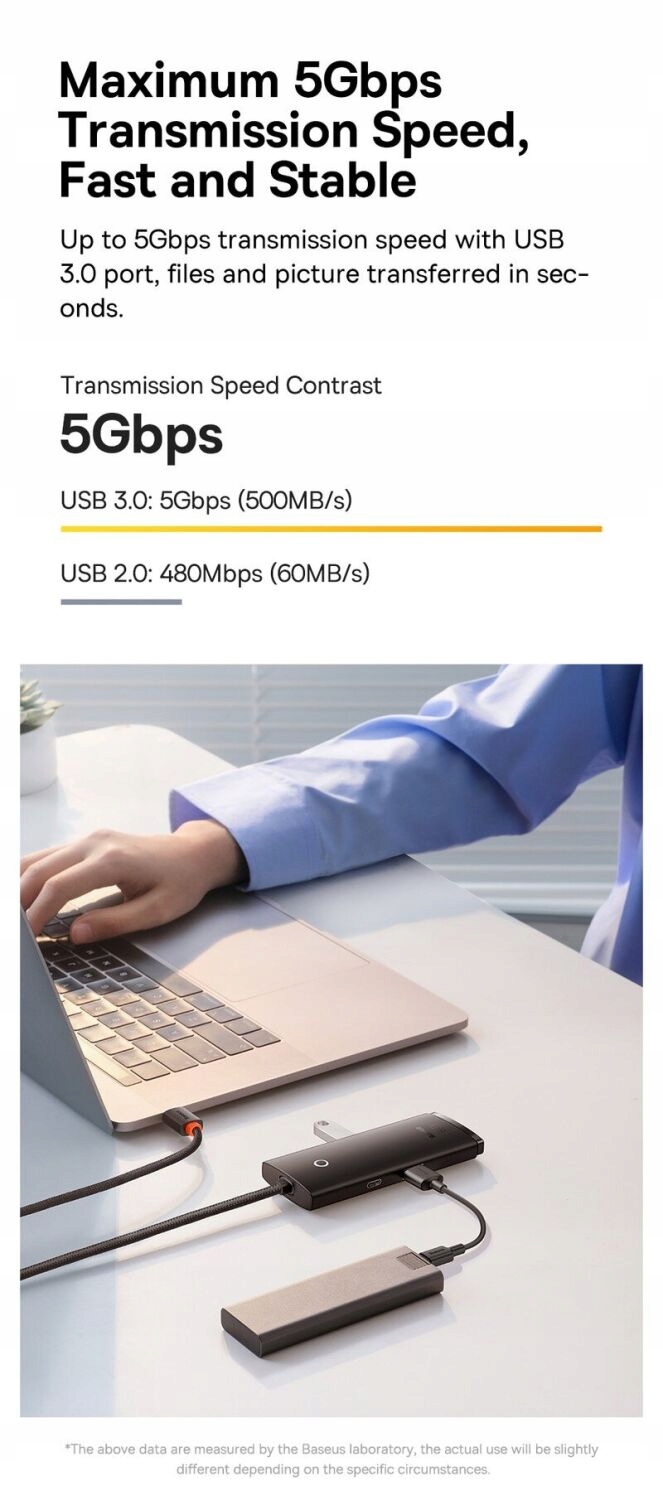 Baseus Hub 4W1 USB-C-4X USB 3.0 + USB-C Active, OTG, 1M