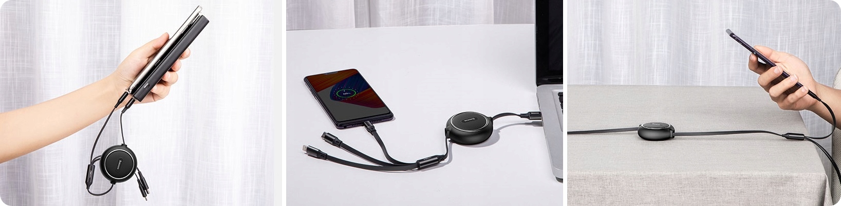 безопасен кабель? Токи передачи. Легкий и быстрый кабель кабеля без риска запутывания. Кабель позволяет заряжать максимальный ток до 2А для каждого разъема, что достаточно для стандартной зарядки, но не соответствует требованиям некоторых более новых технологий быстрой зарядки Как ухаживать за кабелем, чтобы подавать как можно дольше? Прокатный механизм, чтобы избежать запутывания и повреждения. Не только зарядка, но и передача данных. (Только на разъеме молнии)