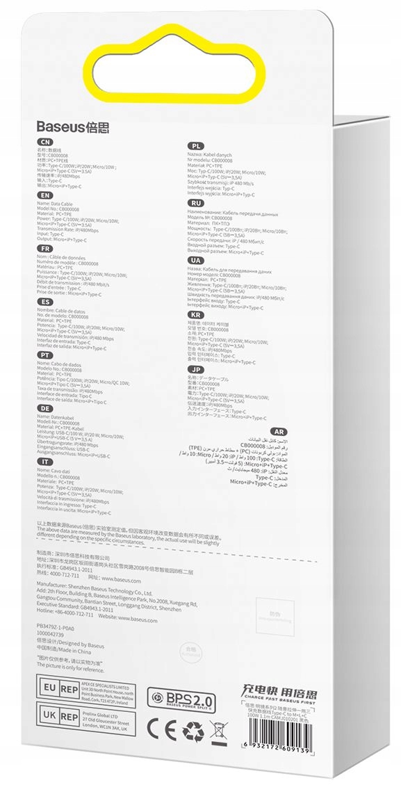 Оплачивая «Baseus USB 3IN1 100W Lightning Cape для iPhone Micro USB-C 1,1м», вы можете быть уверены, что данное изделие из каталога «Одиночные кабели» будет доставлено из Польши и проверено на целостность. В цене товара, указанной на сайте, учтена доставка из Польши. Внимание!!! Товары для Евросоюза, согласно законодательству стран Евросоюза, могут отличаться упаковкой или наполнением.