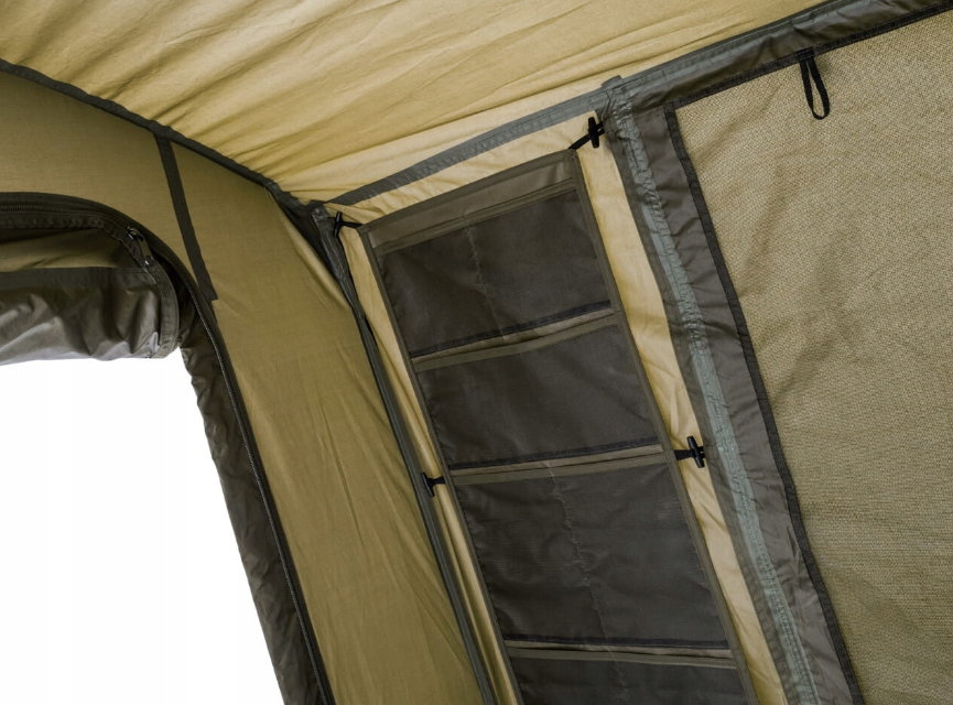 - Тип пола: закрепленная на молнии, просторная многофункциональная палатка, которая стала абсолютным бестселлером не только в Чехии и Центральной Европе. Структура нагрузки была полностью переработана с использованием тройных соединений между ребрами крыши, вертикальными трубами и боковыми натяжными стержнями. Трубы рамы оснащены пружинными зажимами, которые, вероятно, прикрепляют отдельные части рамы в разъеме, значительно облегчая сборку и разборку палатки. В разъемах также есть отверстия, которые позволяют привязать якорные линии при использовании палатки при очень сильном ветре. Это также позволяет демонтировать более короткую длину транспорта. Зажимные замки Mivardi, используемые в телескопических натяжных стержнях с силой экстремальной затяжной силы, надежно прикрепляют их даже в полном объеме. Дополнительный набор боковых стержней в качестве дополнительного оборудования доступен для использования в экстремальных условиях. Боковые стены адаптированы к подъеме организаторов, они могут быть заполнены нагрузкой до трех килограммов. Модификация закрепления боковых стен также способствовала гораздо лучшему стрессу в палатке. Хорошо -углубленное заднее стекло также является хорошим улучшением.