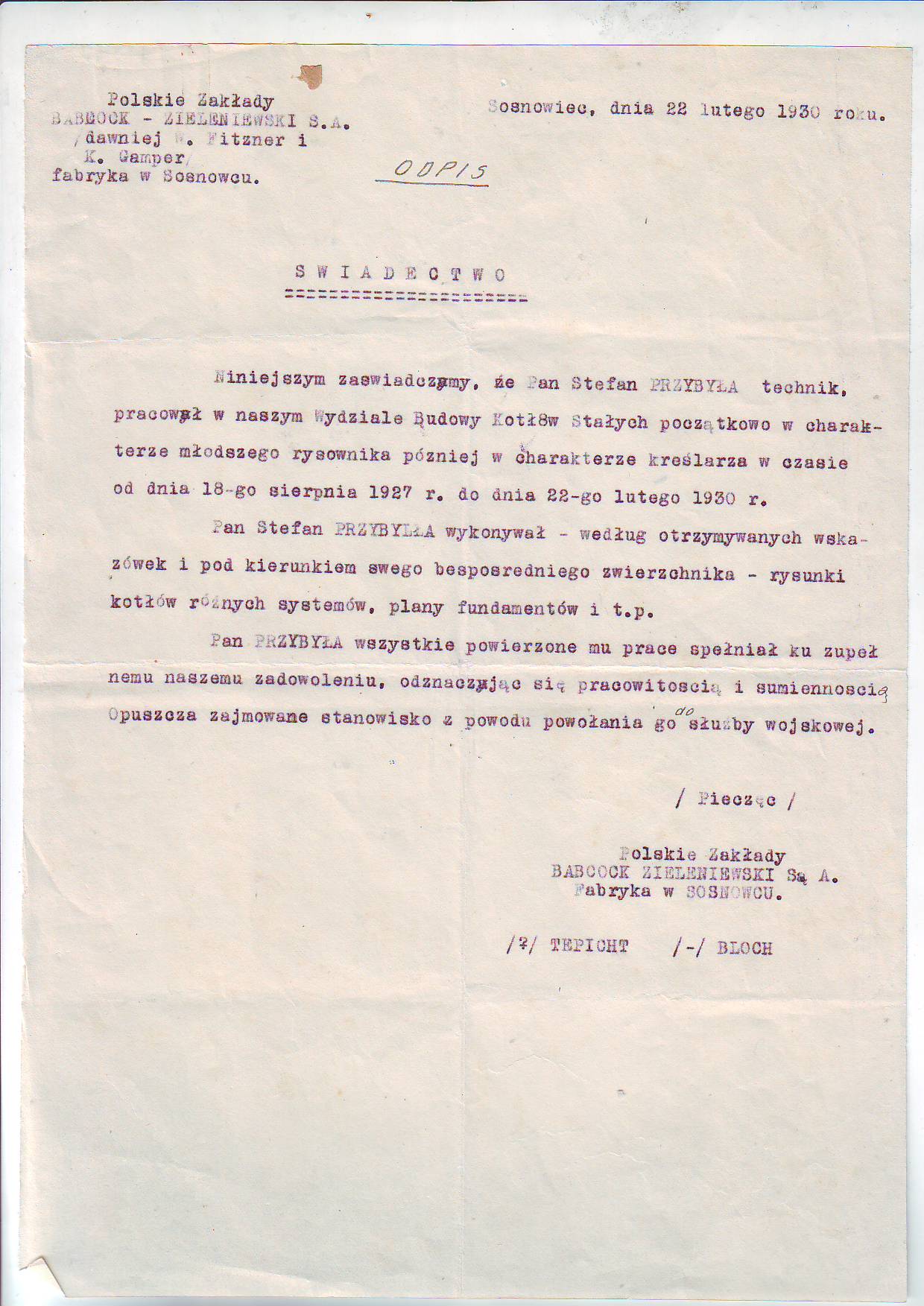 Бабкок-Зеленевский, свидетельство о работе, 1930 г.