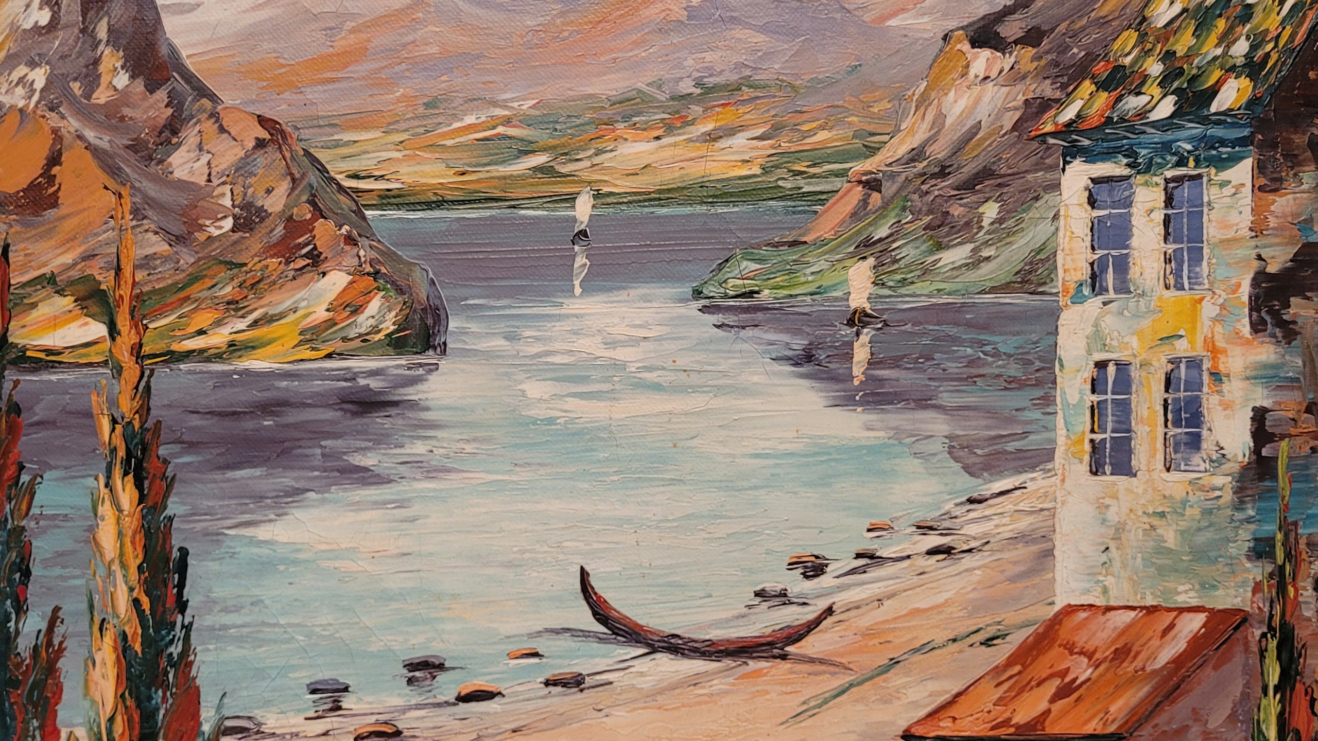 Bech Voigt Sorensen - «Озеро в горах», красивая нефтяная картина.