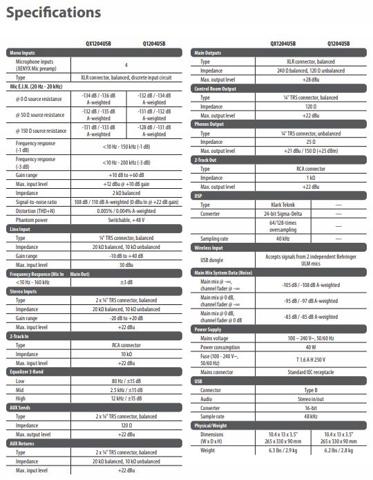 - 4 микрофонных предусилителя XENYX с индивидуальным питанием PHANTOM, сравнимым с автономными эксклюзивными устройствами.