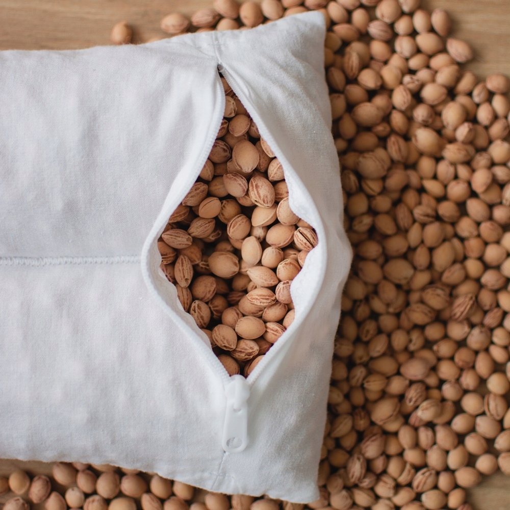 Грелка на 100% натуральная! Для его производства мы используем сушеные вишневые косточки, которые являются отходами. Вкладыш с семенами изготовлен из 100% хлопка белого цвета с сертификатом OEKO-TEX.